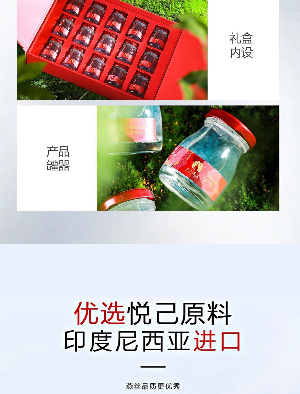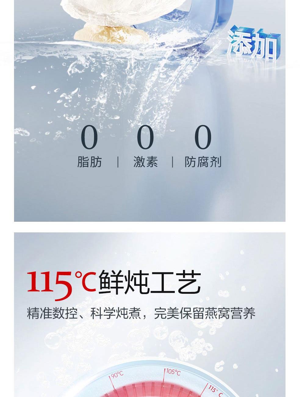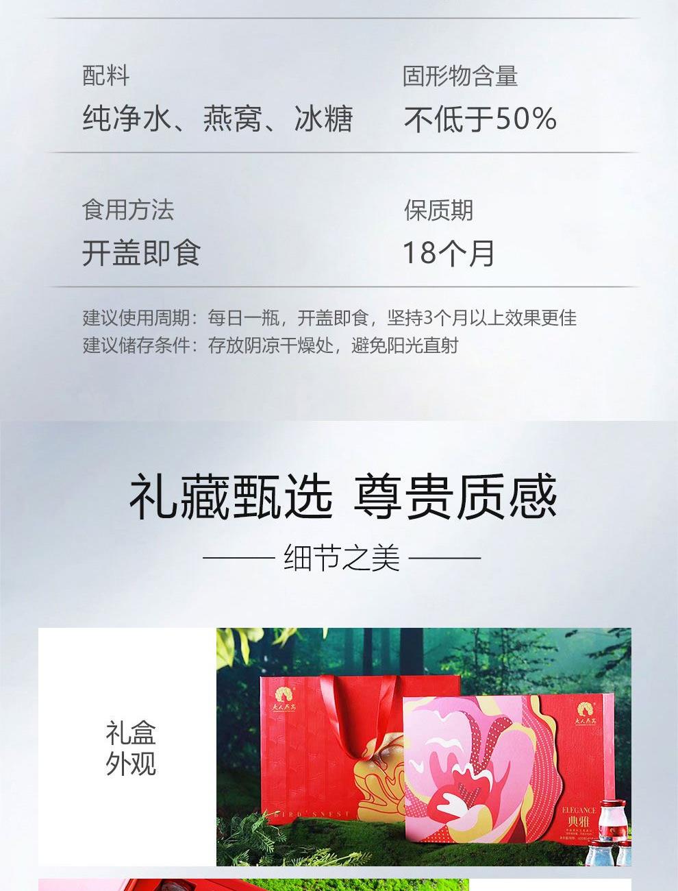 規(guī)格:600克(40克*15瓶)、燕窩固形物不低于50% 賣點: 燕窩原料精選馬來西亞、印尼森林雨季燕盞,潔凈度更高,泡發(fā)率更好。121℃,1140秒數(shù)控,科學燉煮,保留燕窩營養(yǎng),口感細膩爽滑。堅持 0添加 0色素 0防腐劑,孕媽和寶寶也可以放心享用。一瓶一碼可溯源,開蓋即食,開啟滋補。