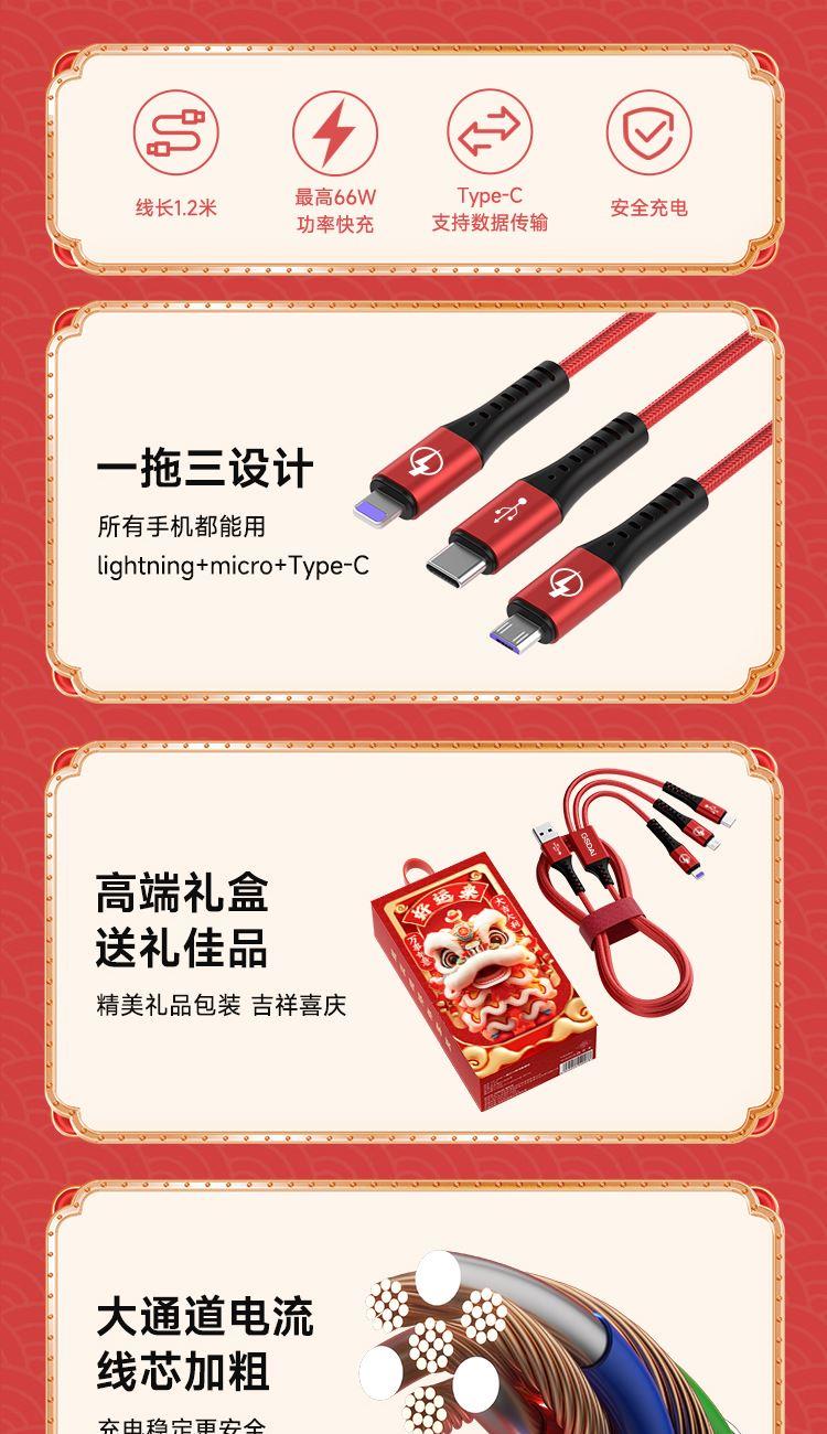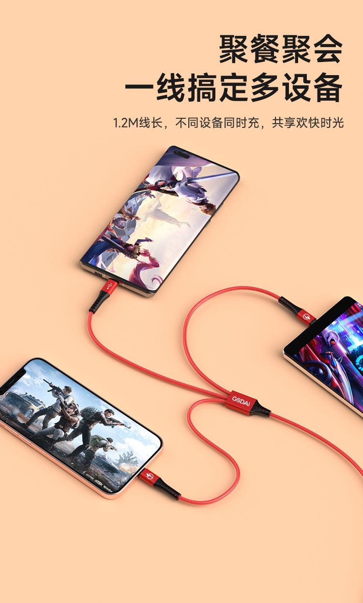 6:一線(xiàn)替代Type-C+蘋(píng) 果+Micro+三線(xiàn),釋放擁擠、桌面空間,一線(xiàn)搞定三部手機(jī)