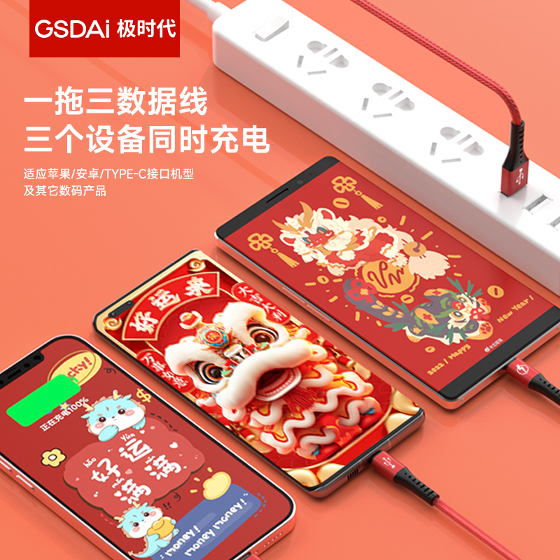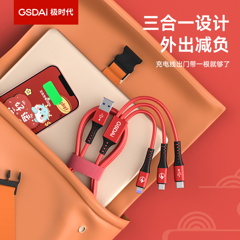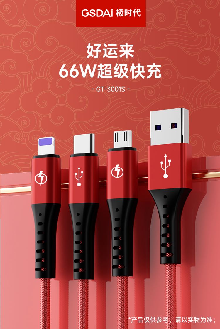 極時(shí)代6A超級(jí)快充三合一數(shù)據(jù)線(xiàn)GT-3001S