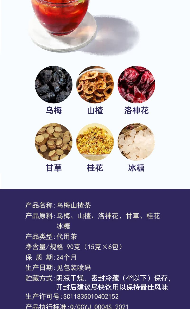 產(chǎn)品規(guī)格:烏梅山楂茶15g*6袋 產(chǎn)品尺寸:21*20*8cm 保質(zhì)期:12個(gè)月