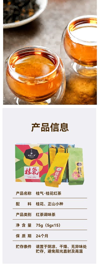 產(chǎn)品規(guī)格:桂花紅茶5g*15泡 產(chǎn)品尺寸:22*14*5.5cm 保質(zhì)期:18個(gè)月