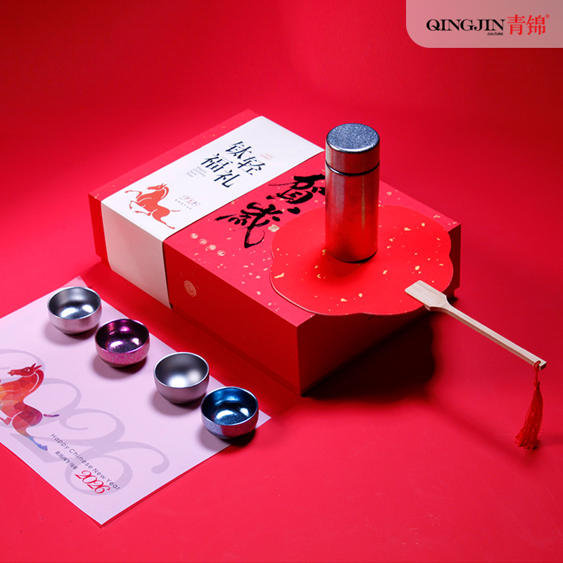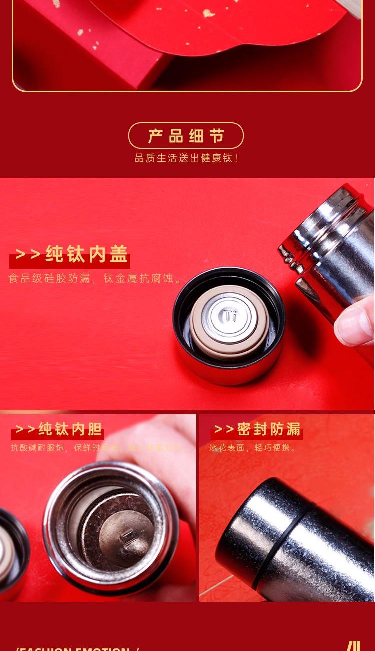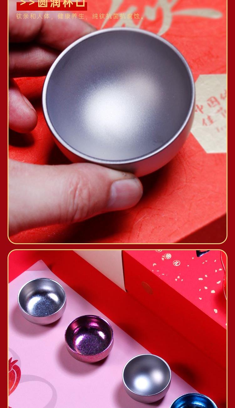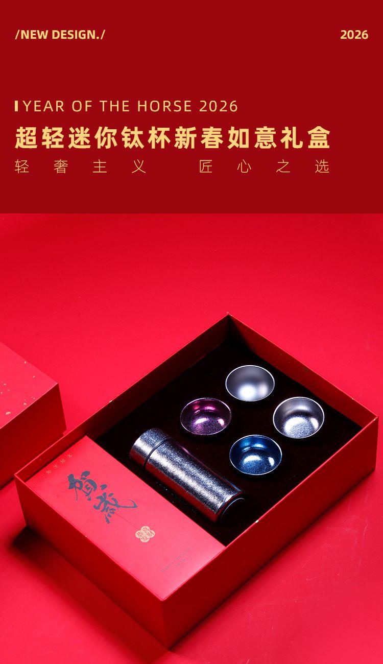 純鈦口袋杯*1只200毫升 重量約125克 對聯(lián)*1-紅包*4 門神*2 純鈦小茶杯*4只 如意團(tuán)扇*1 精裝禮盒手提袋*1灑金藝術(shù)紙精美包裝配置對聯(lián)紅包新春氛圍拉滿 免費(fèi)定制logo不限數(shù)量 免費(fèi)出效果圖 匠心工藝 純鈦材質(zhì) 保鮮 新春創(chuàng)意商務(wù)禮