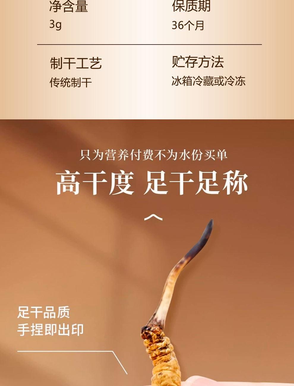 規(guī)格:3克(約12支) 賣點: 西藏是冬蟲夏草的重要產區(qū),那里的高海拔環(huán)境,如雪山、草地,晝夜溫差大,紫外線強烈。這種獨特的生態(tài)環(huán)境造就了冬蟲夏草的高品質,它生長在這樣嚴酷的條件下,積累了豐富的營養(yǎng)成分。