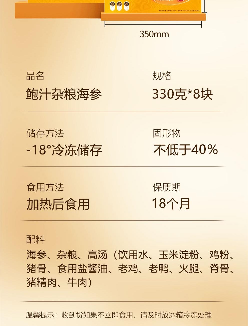 - 保留營(yíng)養(yǎng):烹飪過(guò)程注重保留食材的營(yíng)養(yǎng)成分,讓消費(fèi)者在享受美味的同時(shí),也能攝取到海參和雜糧的原始營(yíng)養(yǎng)。