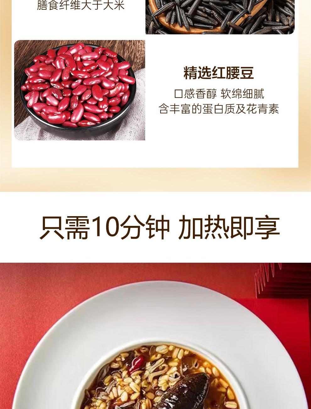 - 口感豐富:海參軟嫩彈牙,鮑汁濃郁醇厚,雜糧則帶來(lái)不同的顆粒感,比如薏仁的軟糯、燕麥的勁道,幾種口感相互交融,層次分明。