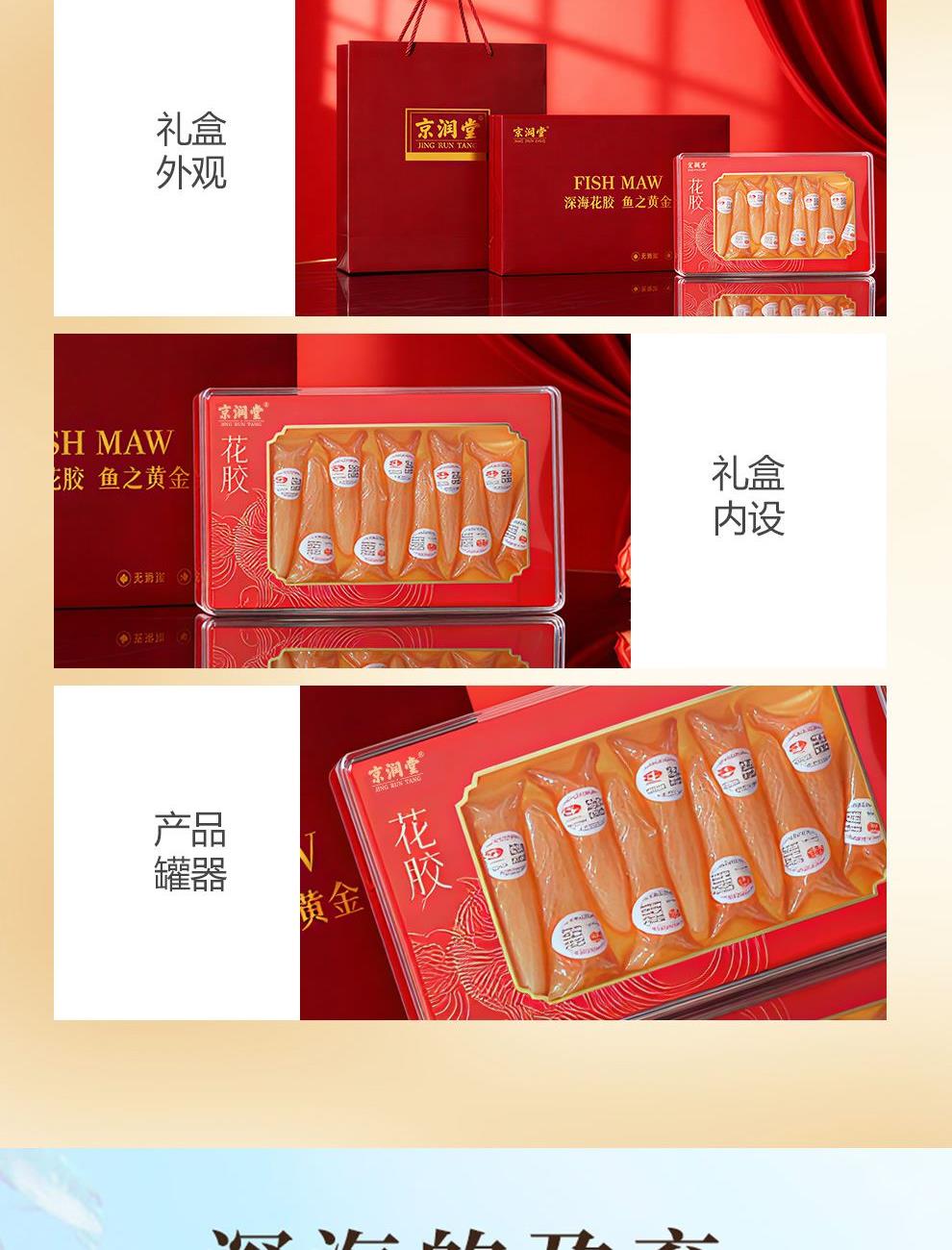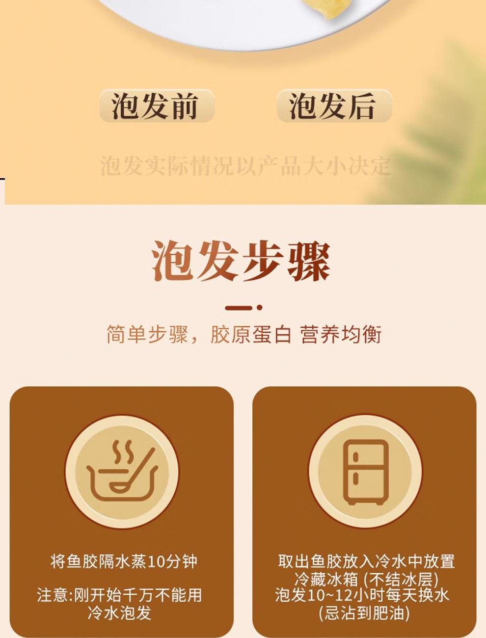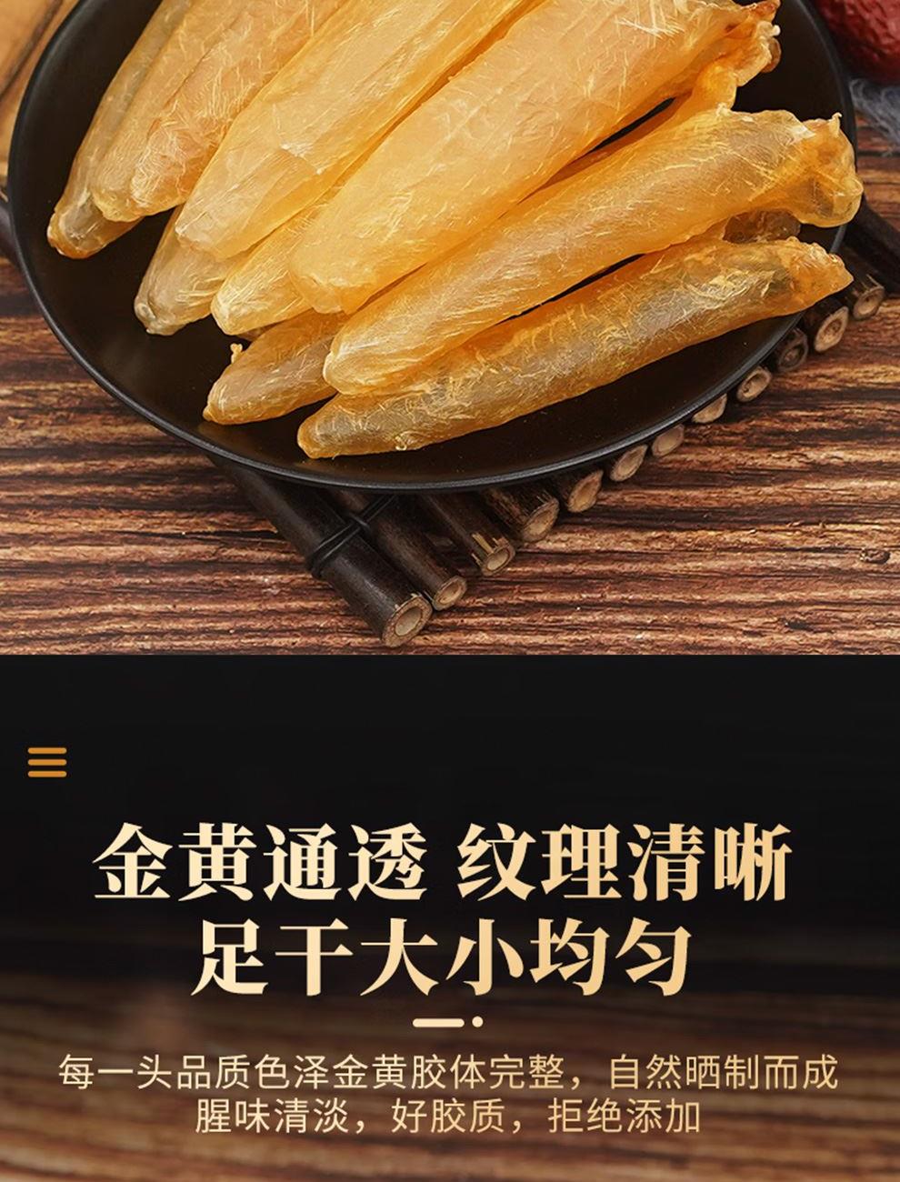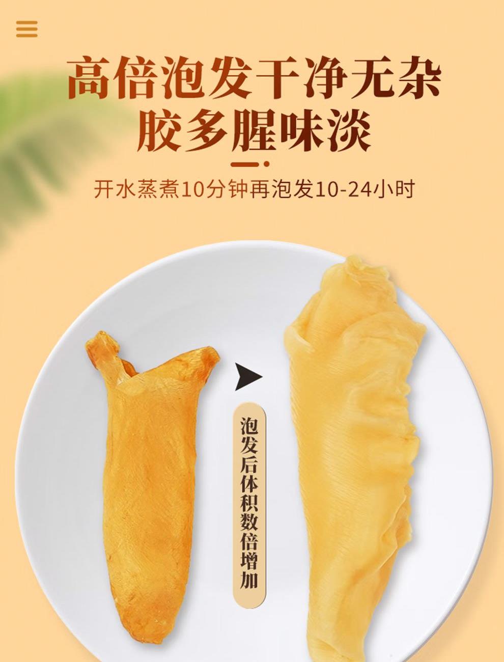規(guī)格:50克(8-12頭) 賣點: 營養(yǎng)價值高:黃花筒膠是花膠的一種,富含膠原蛋白,這種成分對皮膚有很好的滋養(yǎng)作用,能夠增加皮膚的彈性,減少皺紋,起到美容養(yǎng)顏的功效。同時,還含有多種維生素和礦物質(zhì),有助于補充人體所需的營養(yǎng)元素。 - 口感鮮美:在烹飪后,黃花筒膠具有軟滑、Q彈的口感 - 烹飪多樣性:可以用于多種烹飪方式,比如制作花膠雞湯、花膠排骨湯等滋補湯品。