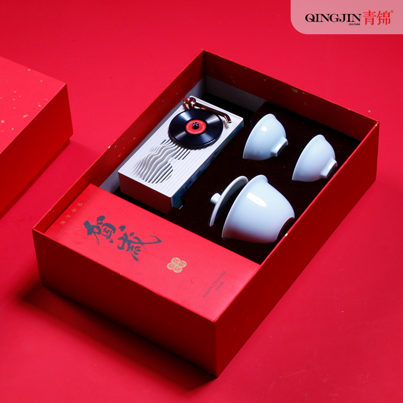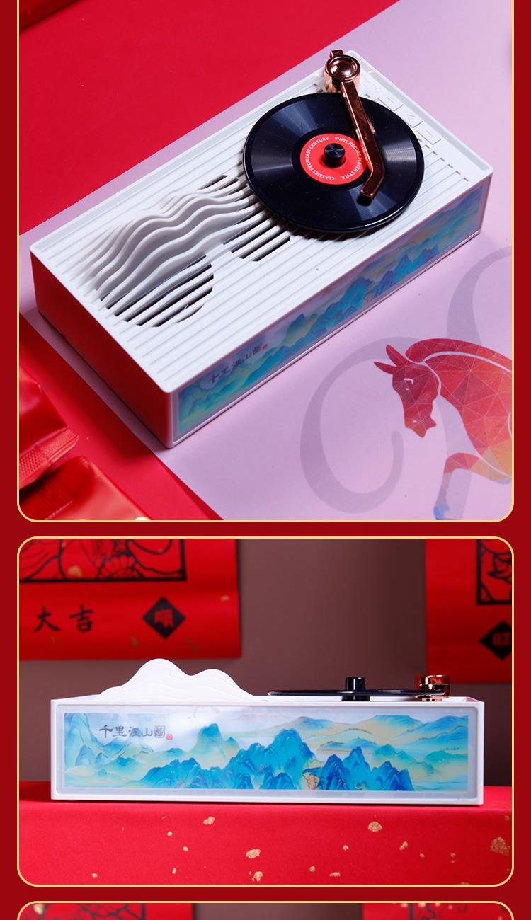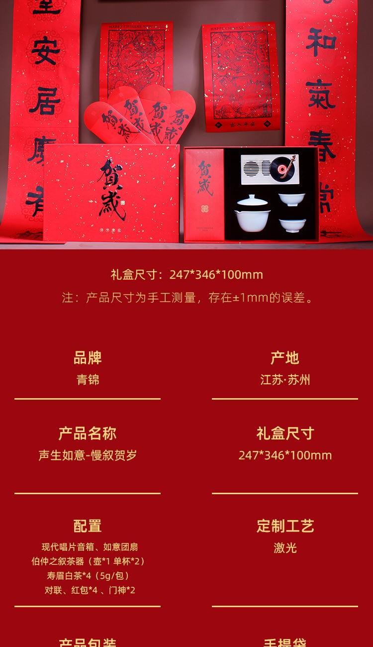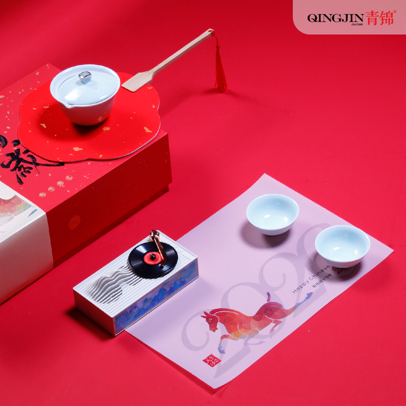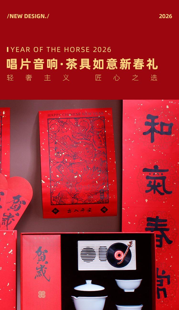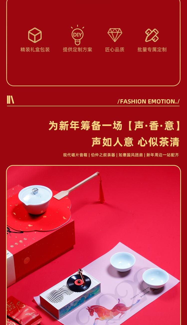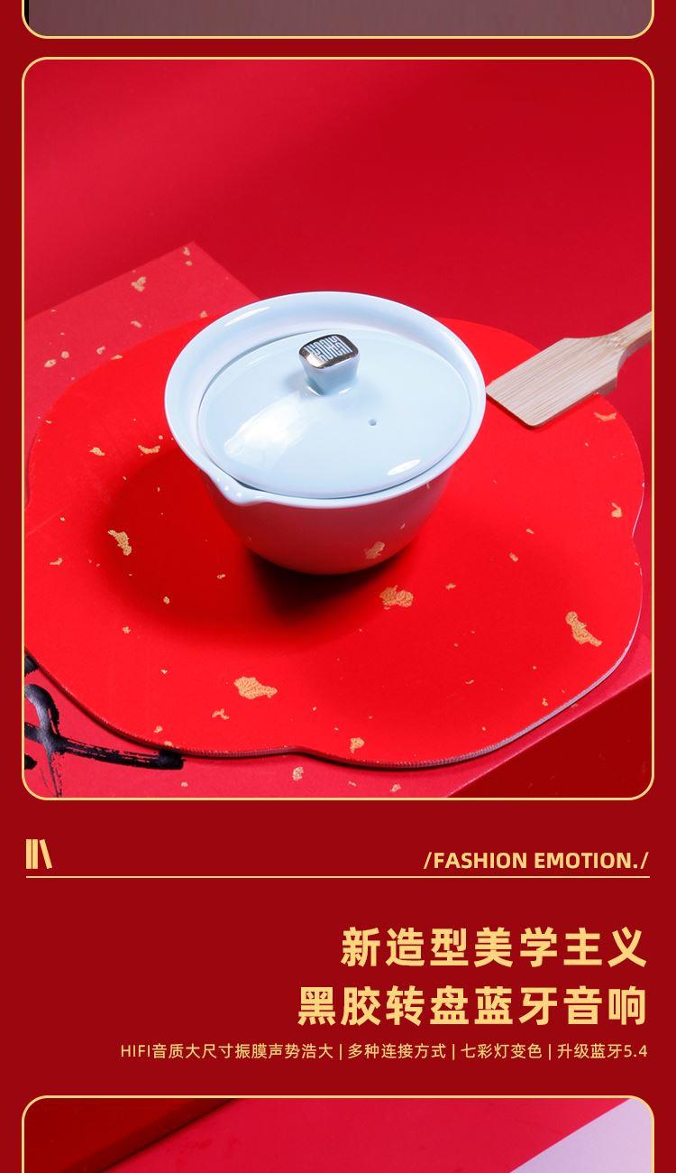 音箱采用現(xiàn)代唱片式創(chuàng)意設(shè)計(jì) 喝茶賞樂(lè) 精裝新春氛圍藝術(shù)紙彩盒配置對(duì)聯(lián)紅包新春氛圍拉滿(mǎn)茶器采用 影青釉 匠心工藝原創(chuàng)設(shè)計(jì)器型