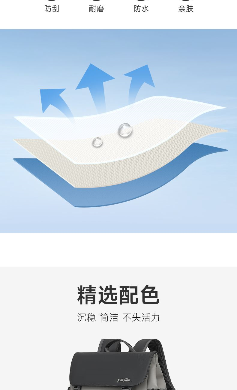 面料升級(jí)版防潑耐刮劃,全新耐磨防潑水面料 柔軟質(zhì)感 日常易打理型號(hào): FF-D003A