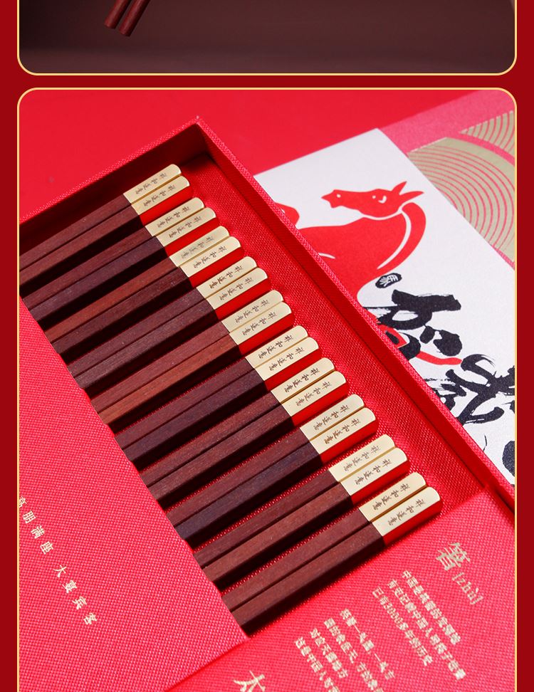 賀歲大宴5雙裝紅檀木生肖筷酒杯套裝禮盒送客戶私人定制 禮品已成功加入PPT!
