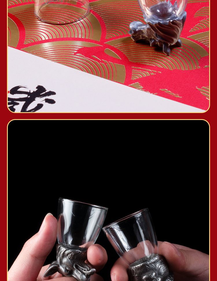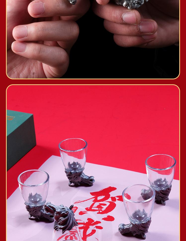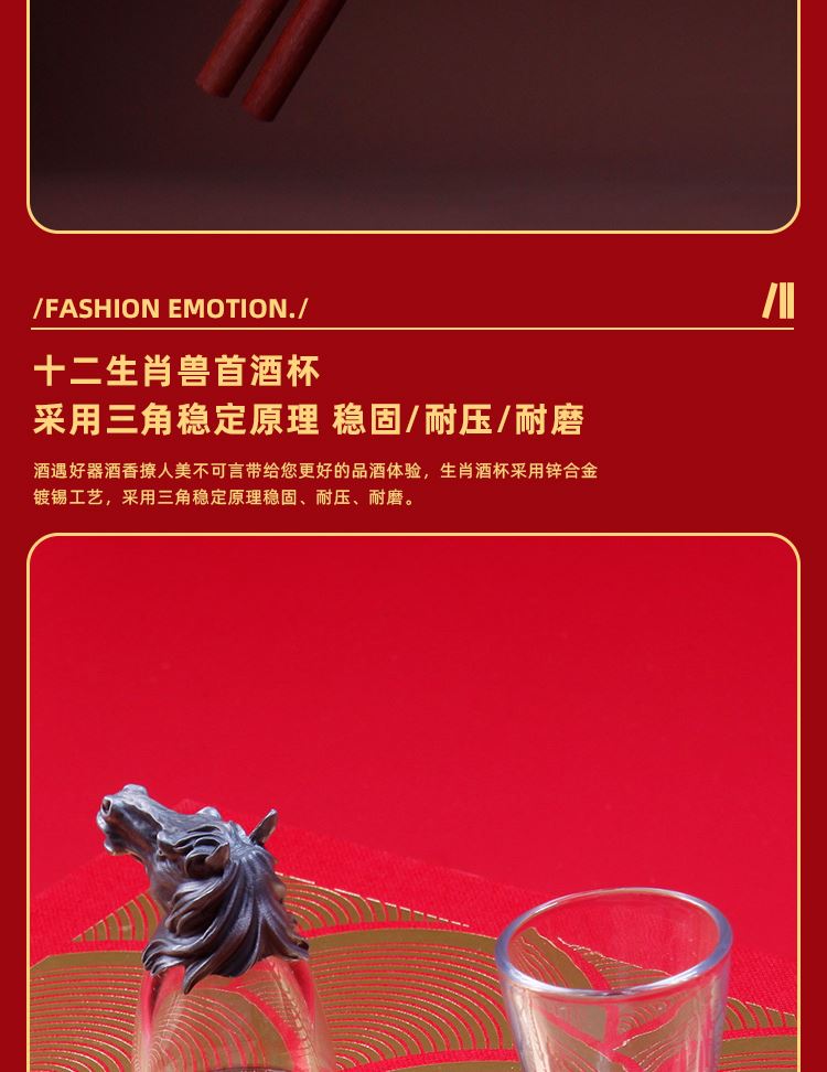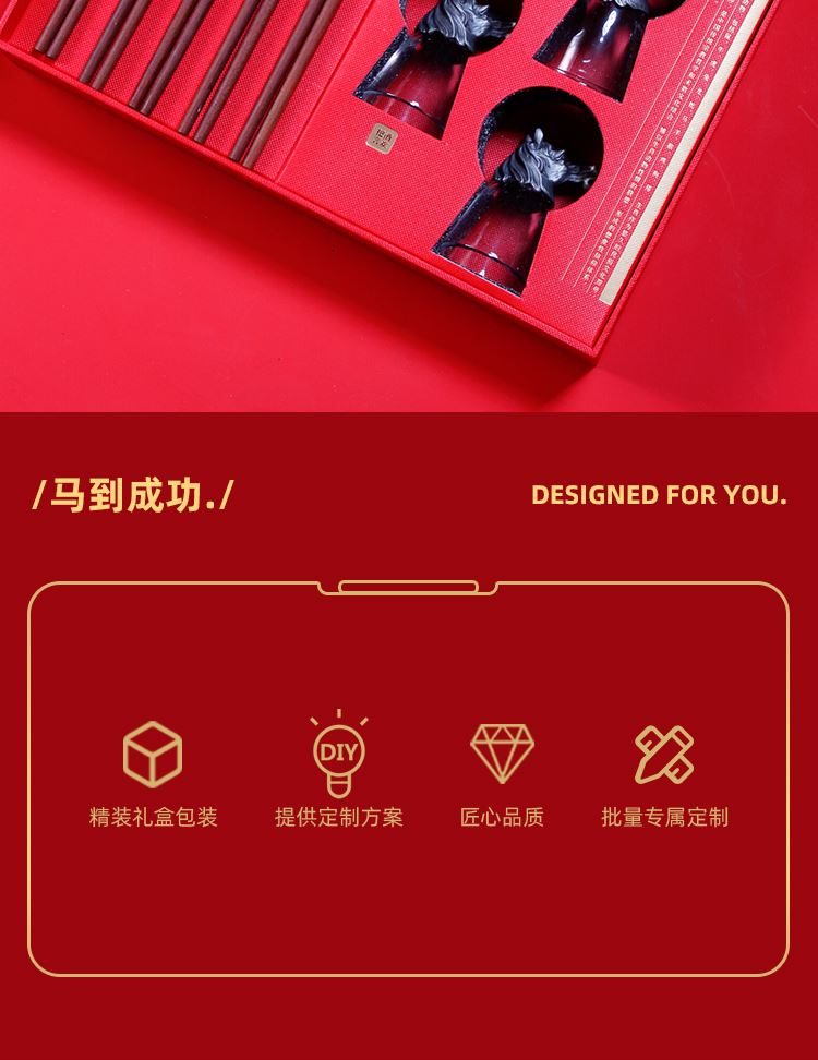 紅檀木筷x5 雙 酒杯x5 只(馬首白酒杯-可以根據(jù)喜歡自選)創(chuàng)意設(shè)計可以倒立的生肖馬首白酒杯讓祝福更有心意創(chuàng)意 紅檀木筷子珍貴木材黃銅鍍金筷頭 筷頭可以私人定制精裝藝術(shù)紙禮盒 免費定制logo出效果圖