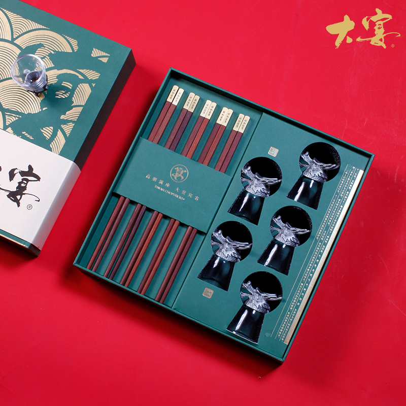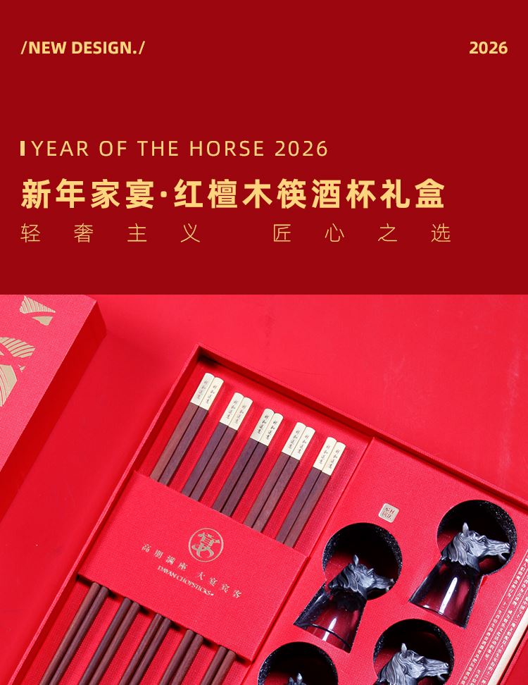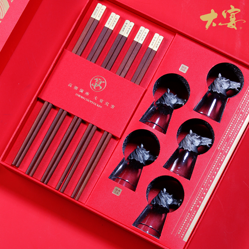 賀歲大宴5雙裝紅檀木生肖筷酒杯套裝禮盒送客戶私人定制 賀歲大宴5雙裝紅檀木生肖筷酒杯套裝禮盒送客戶私人定制