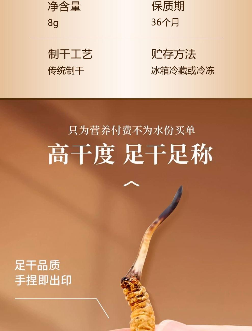 規(guī)格:8克(約32支) 賣點: 西藏是冬蟲夏草的重要產區(qū),那里的高海拔環(huán)境,如雪山、草地,晝夜溫差大,紫外線強烈。這種獨特的生態(tài)環(huán)境造就了冬蟲夏草的高品質,它生長在這樣嚴酷的條件下,積累了豐富的營養(yǎng)成分。