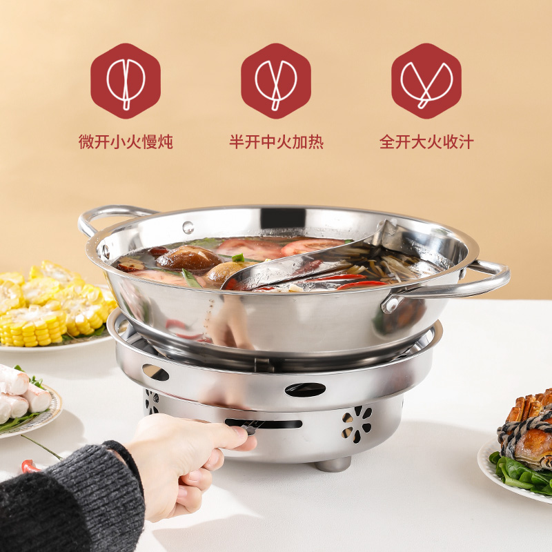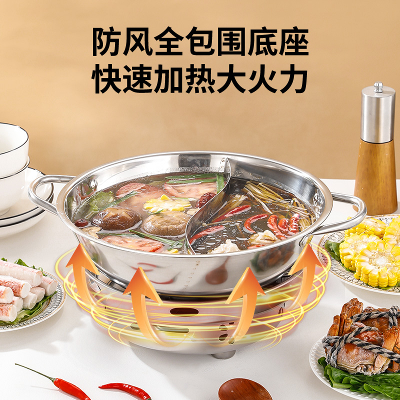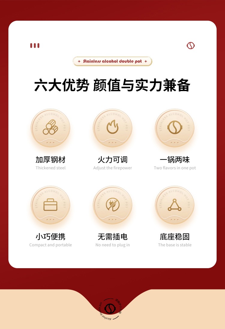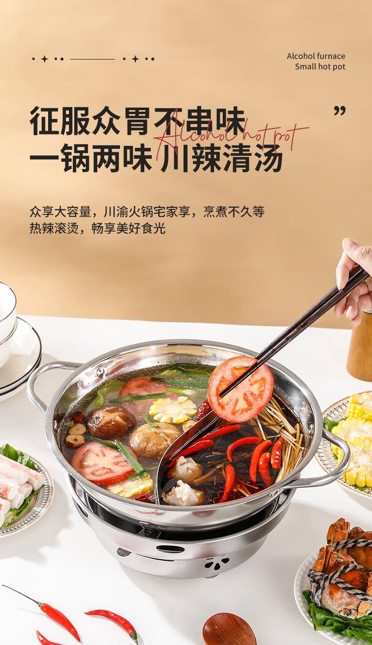 產(chǎn)品規(guī)格:28cm鴛鴦鍋?酒精爐?湯勺?漏勺 產(chǎn)品材質(zhì):201不銹鋼 彩盒尺寸:52.5*10*28.5CM 外箱尺寸:64*54*59 cm 福祿雙喜,湯勺撈福,漏勺添財,紅紅火火團團圓圓, 火鍋二味分隔設計滿足不同口味需求,酒精爐加熱保持溫度穩(wěn)定 搭配不銹鋼湯勺漏勺,冬天涮火鍋實用又美味~ 超大禮盒包裝,客情維護,促銷儲值禮品,低成本高價值。