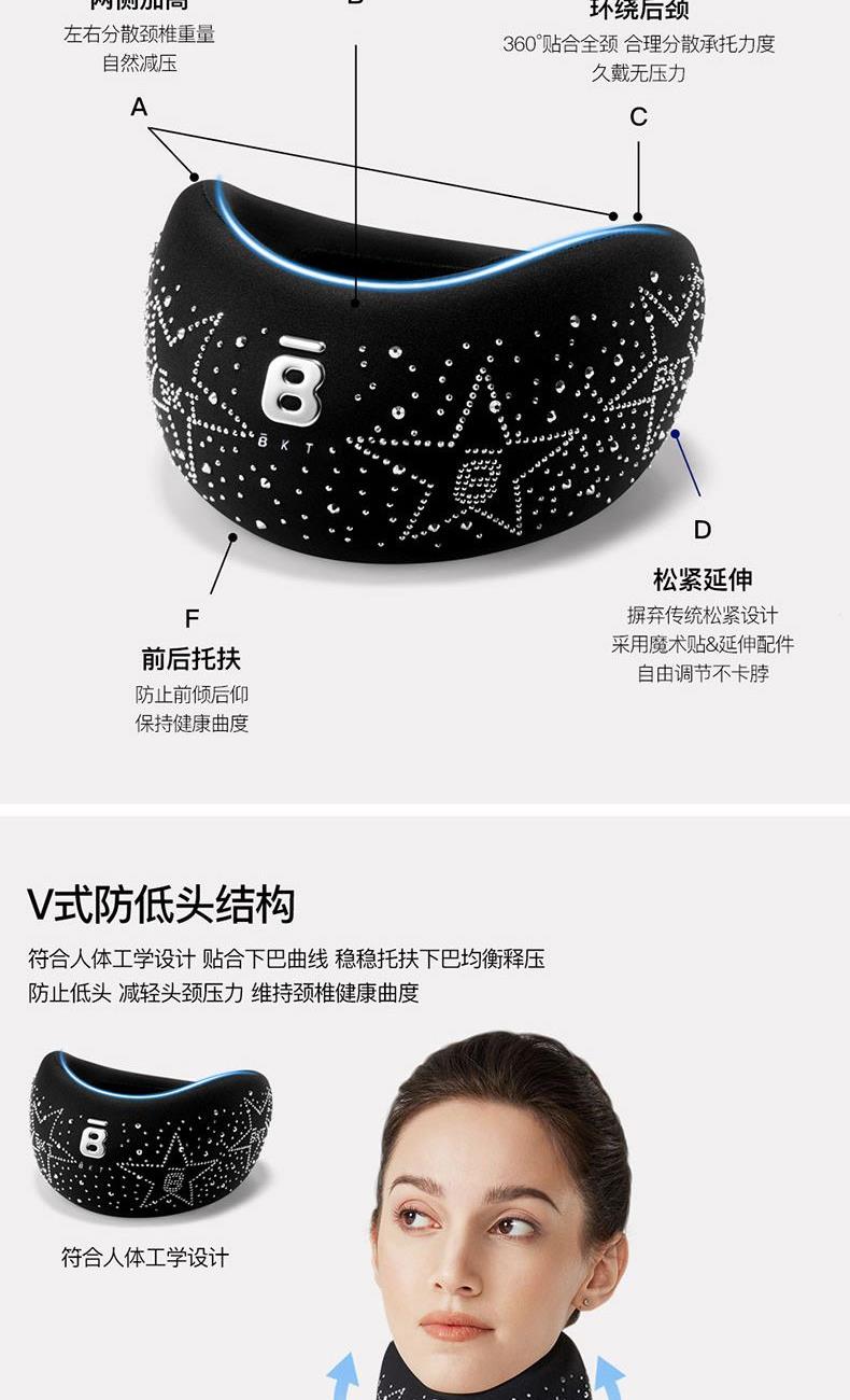 產(chǎn)品尺寸:182*210*91mm 產(chǎn)品材質(zhì):面料1:78% 錦綸 22%氨綸 面料2:85% 錦綸 15%氨綸 填充物 :聚氨酯 適宜人群:低頭族/辦公族/學(xué)生等長期低頭人群,有不良習(xí)慣人群,需緩解疲勞與肩頸酸痛人群,需要改善體態(tài)注重頸部健康人群。