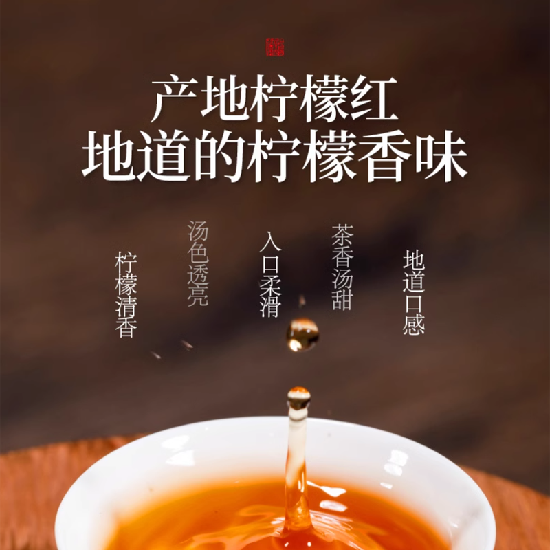 茶茶一季檸檬紅茶110g,以“鮮爽解膩·一泡即享”為核心賣點——精選安岳檸檬與云南高山滇紅茶基底,經(jīng)低溫慢焙工藝融合,保留檸檬清新酸香與紅茶醇厚甜潤,茶湯呈紅橙透亮,入口酸甜平衡,回甘持久;