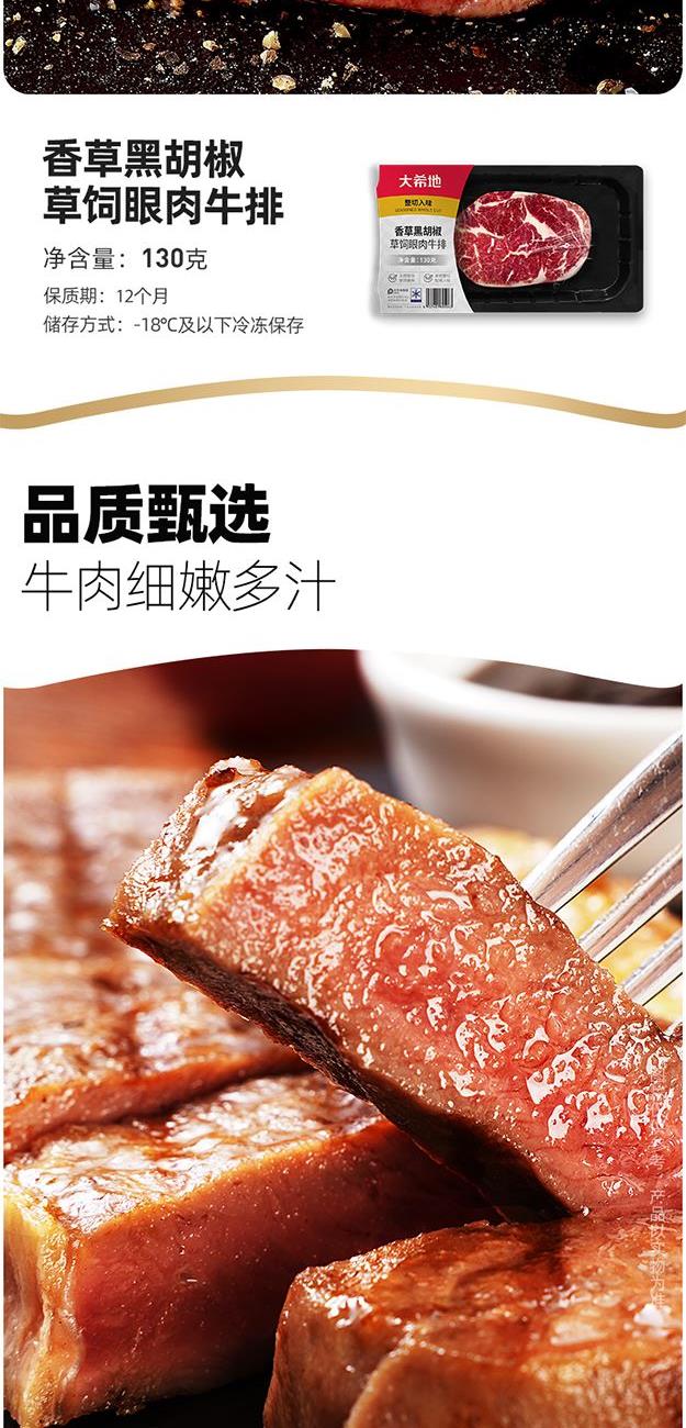 DXDSW-02 大希地商務(wù)禮499型 大希地 香草黑胡椒草飼眼肉牛排130g*2 大希地 香草黑胡椒草飼西冷牛排130g*2 大一統(tǒng)整切菲力牛排130g(2片袋裝)*2 大希地 香草黑胡椒草飼牡蠣牛排150g貼膚裝(2片)*2 大希地牛仔骨200g(袋裝)*2 精美刀叉一副"
