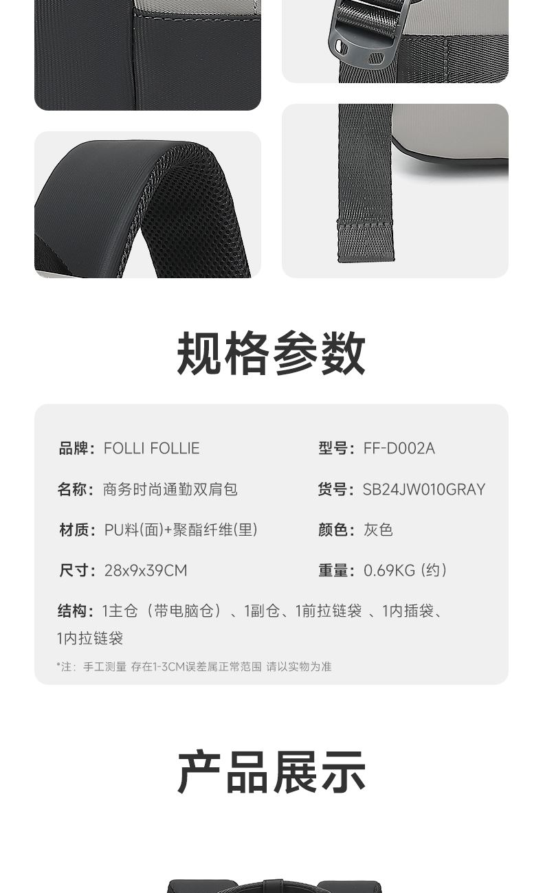 FolliFollie商務(wù)簡(jiǎn)約修身雙肩包FF-D002A