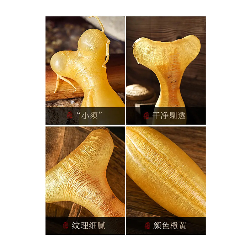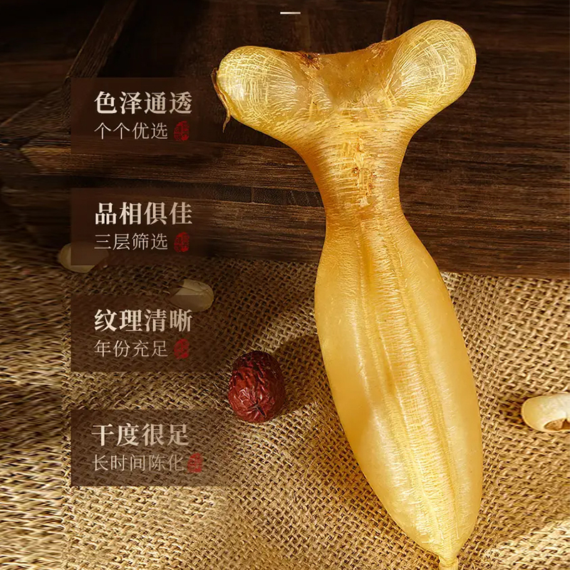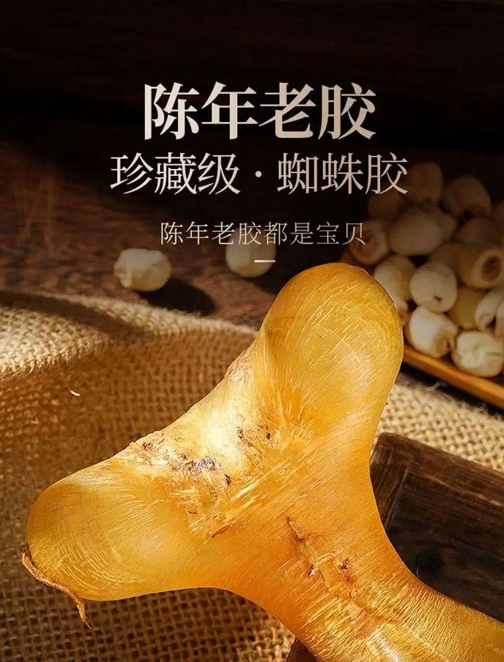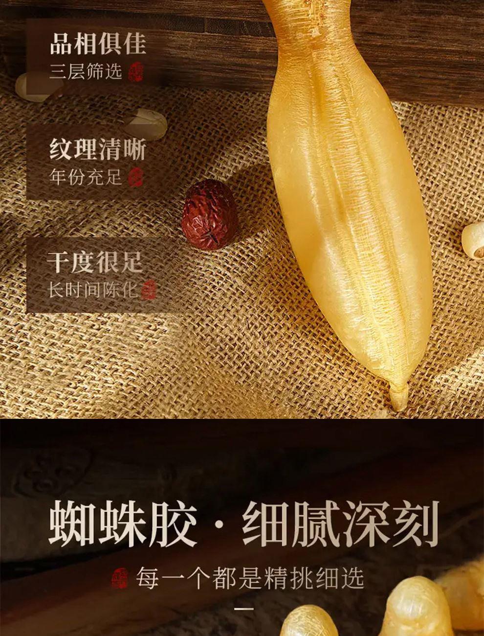 - 品質(zhì)提升:長(zhǎng)時(shí)間的存放使魚(yú)膠的質(zhì)地更加細(xì)膩,腥味也會(huì)隨著時(shí)間而減弱。經(jīng)過(guò)多年陳化后,蜘蛛膠的口感會(huì)更加醇厚、軟滑,在烹飪過(guò)程中能夠更好地吸收湯汁的味道,使其風(fēng)味更加濃郁。