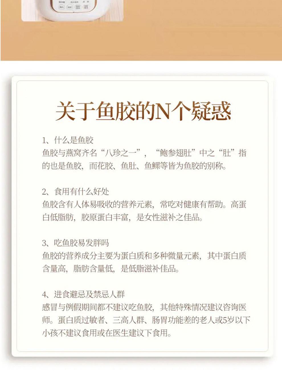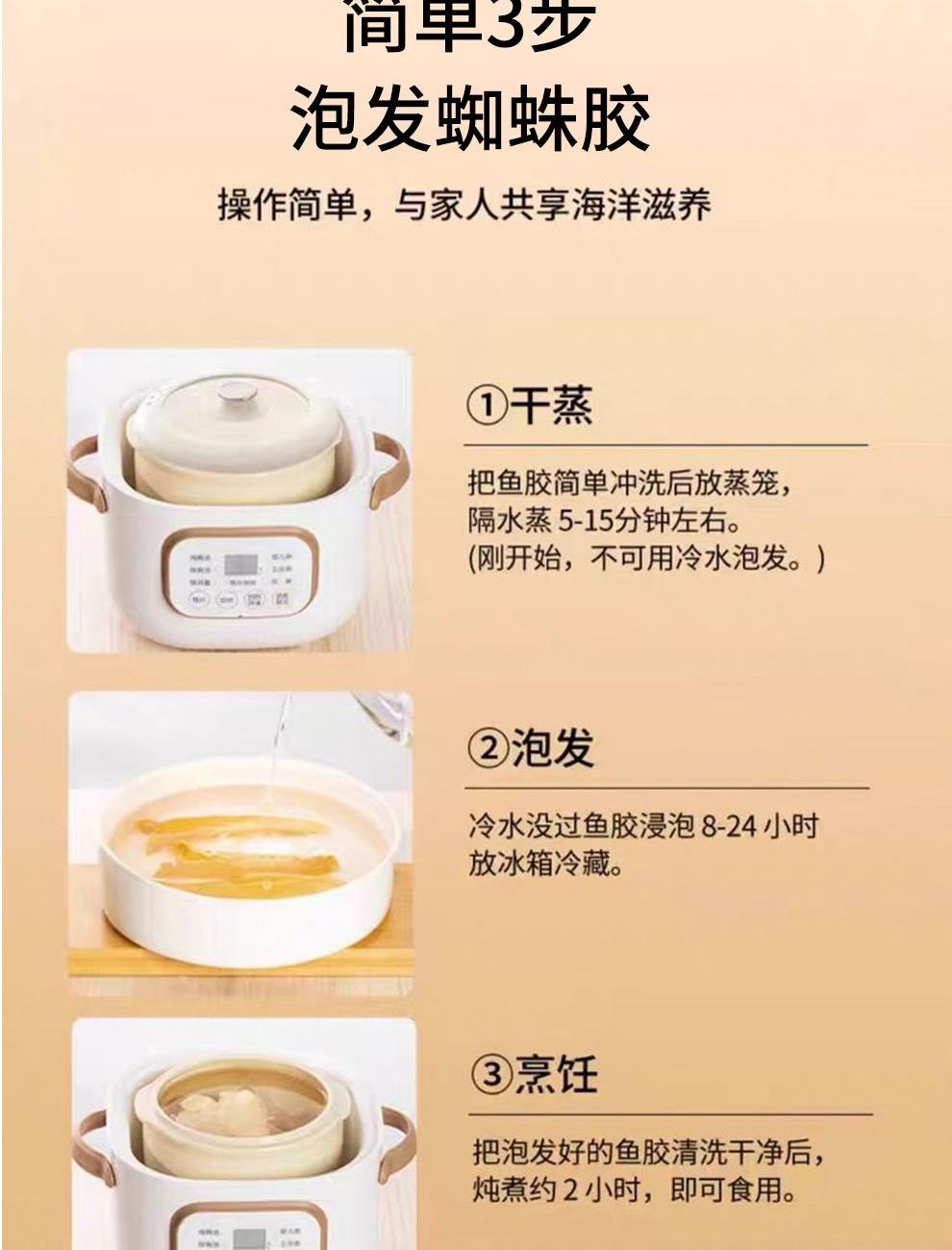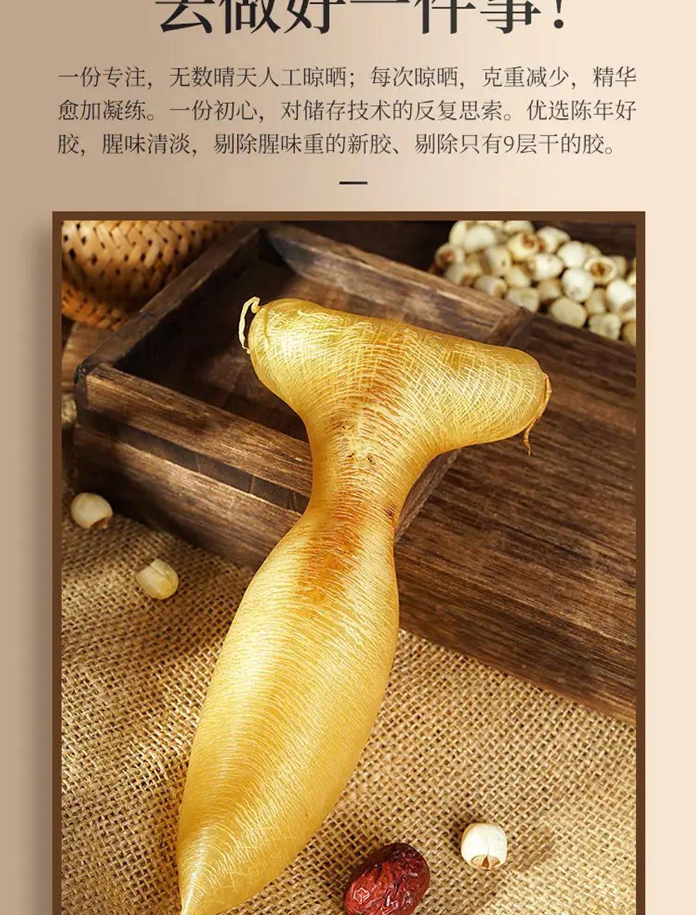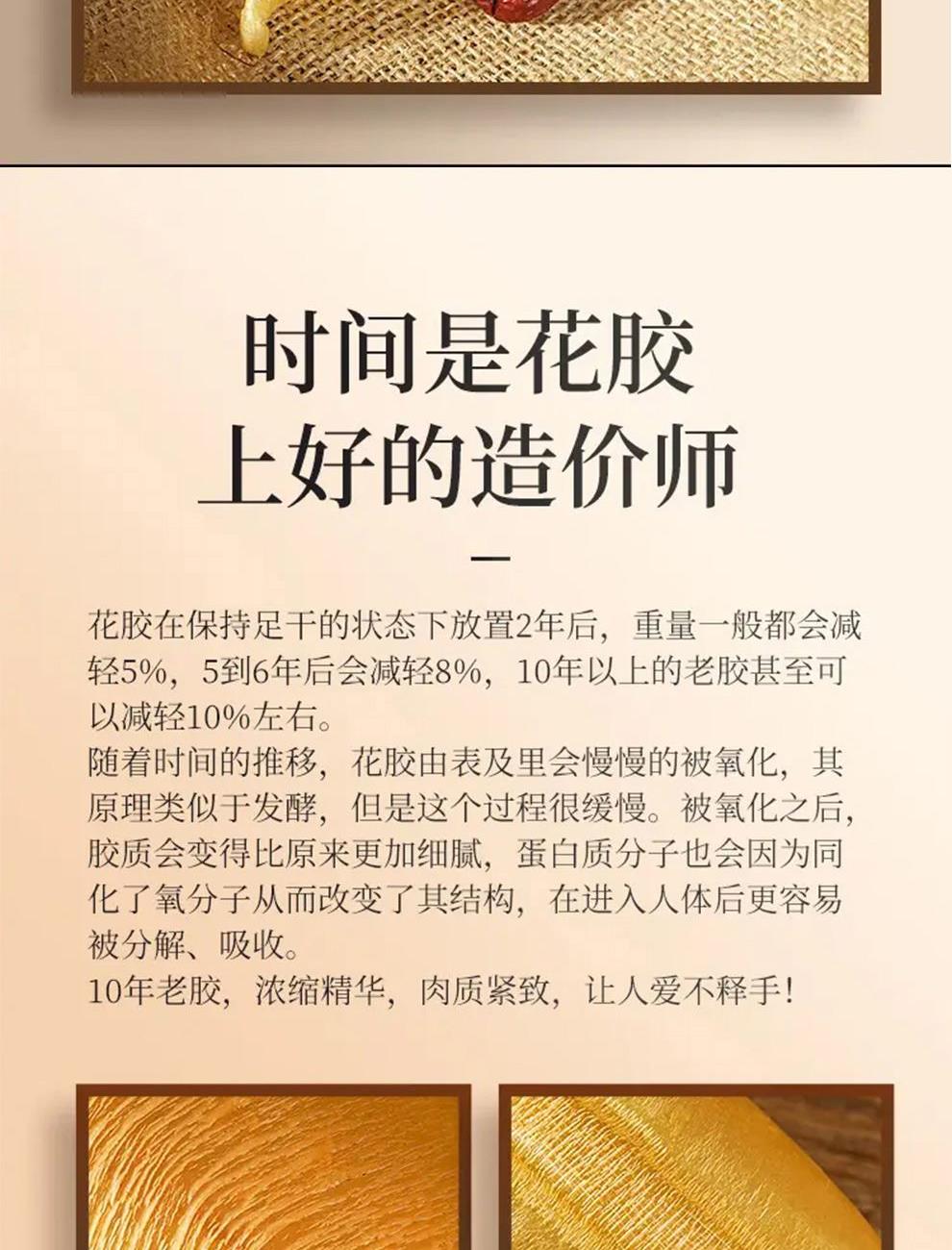 - 品質(zhì)提升:長(zhǎng)時(shí)間的存放使魚(yú)膠的質(zhì)地更加細(xì)膩,腥味也會(huì)隨著時(shí)間而減弱。經(jīng)過(guò)多年陳化后,蜘蛛膠的口感會(huì)更加醇厚、軟滑,在烹飪過(guò)程中能夠更好地吸收湯汁的味道,使其風(fēng)味更加濃郁。