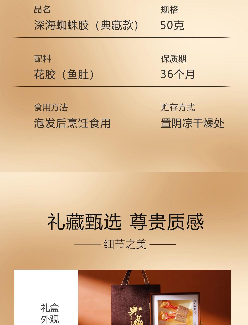 - 營(yíng)養(yǎng)積累:隨著年份的增加,深海蜘蛛膠中的營(yíng)養(yǎng)成分不斷積累。它富含膠原蛋白,年份越久,膠原蛋白的含量和質(zhì)量越高,這種成分對(duì)于保持肌膚彈性、修復(fù)身體組織等方面有著顯著的功效