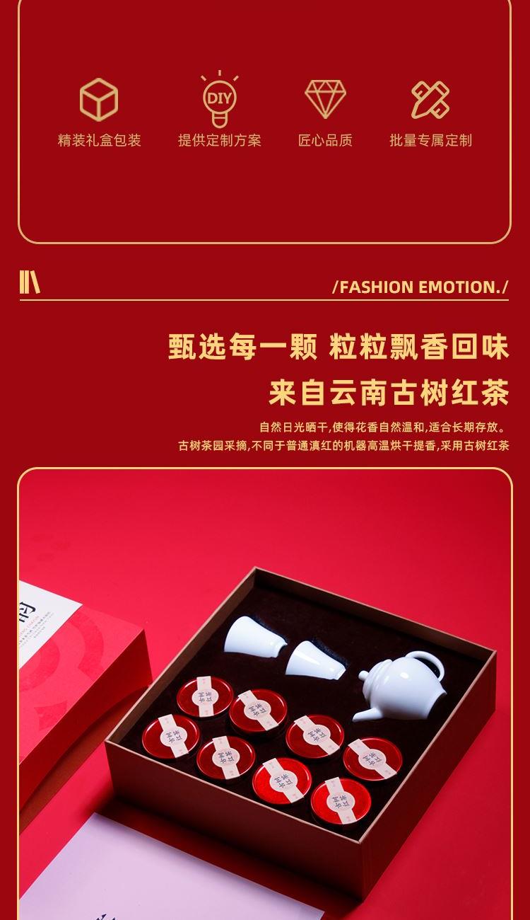 伯仲單杯x2 伯仲壺x1 古樹紅茶x8粒原產(chǎn)西雙版古樹紅茶龍珠8粒 五秒出湯醇香甘甜 經(jīng)典望川壺器型 精致典雅 耐看 一壺兩杯隨行品鑒 精裝禮盒 可以定制企業(yè)logo 文化主題