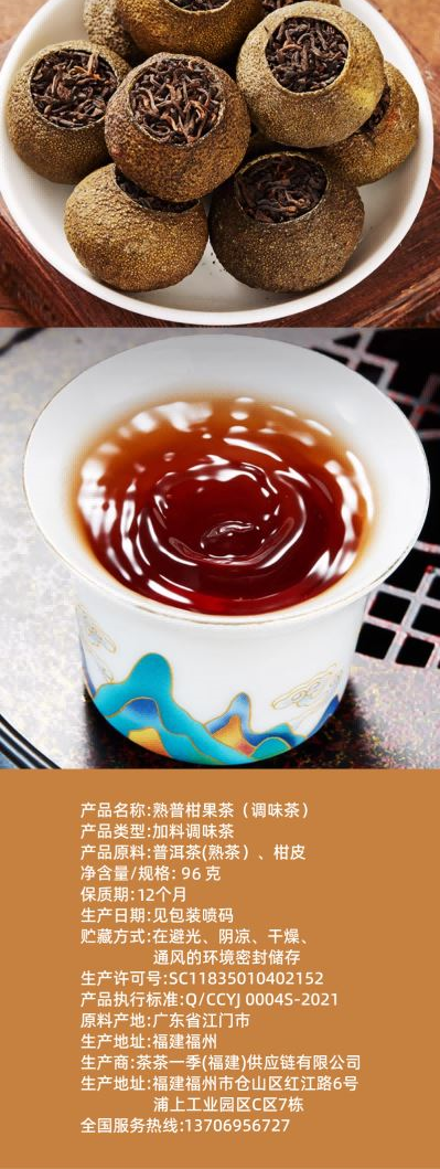 茶茶一季熟普柑果茶96g(12g*8顆),以“柑香馥郁·醇厚甘潤”為核心賣點。
