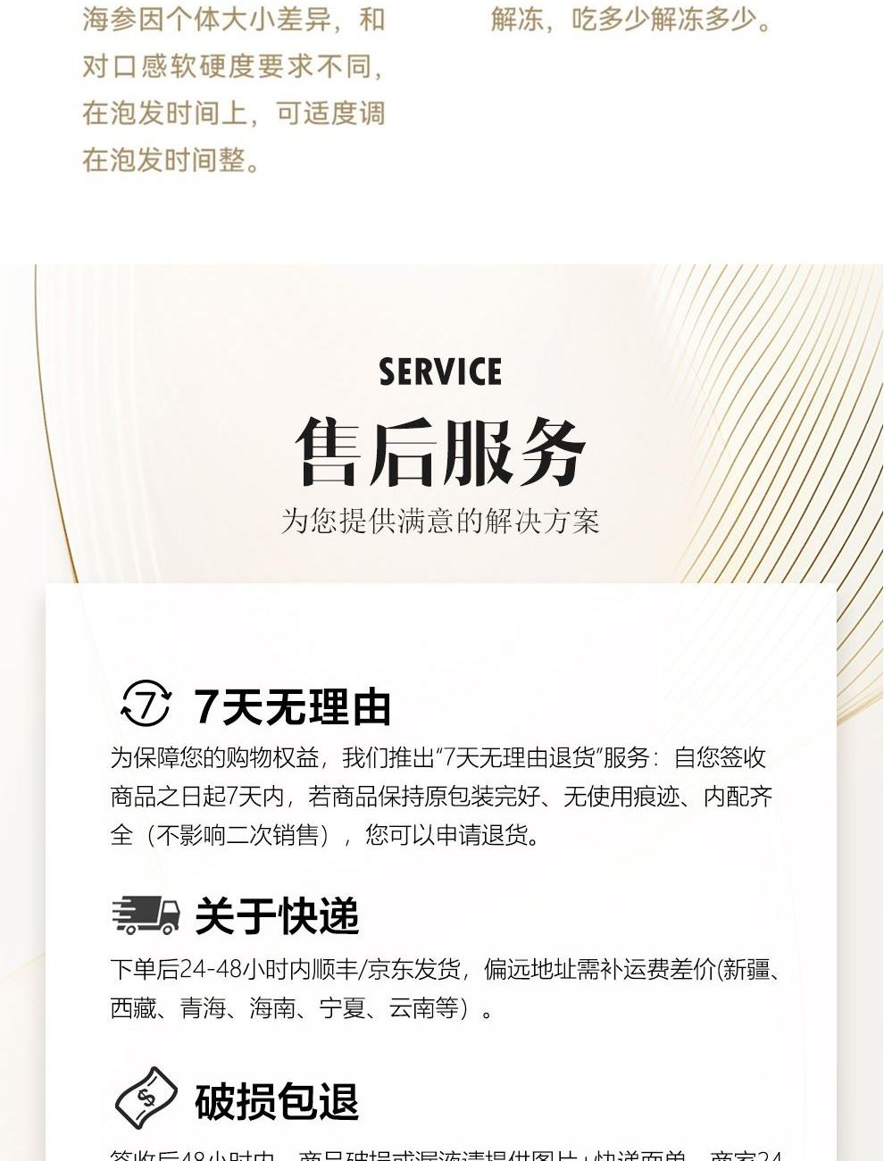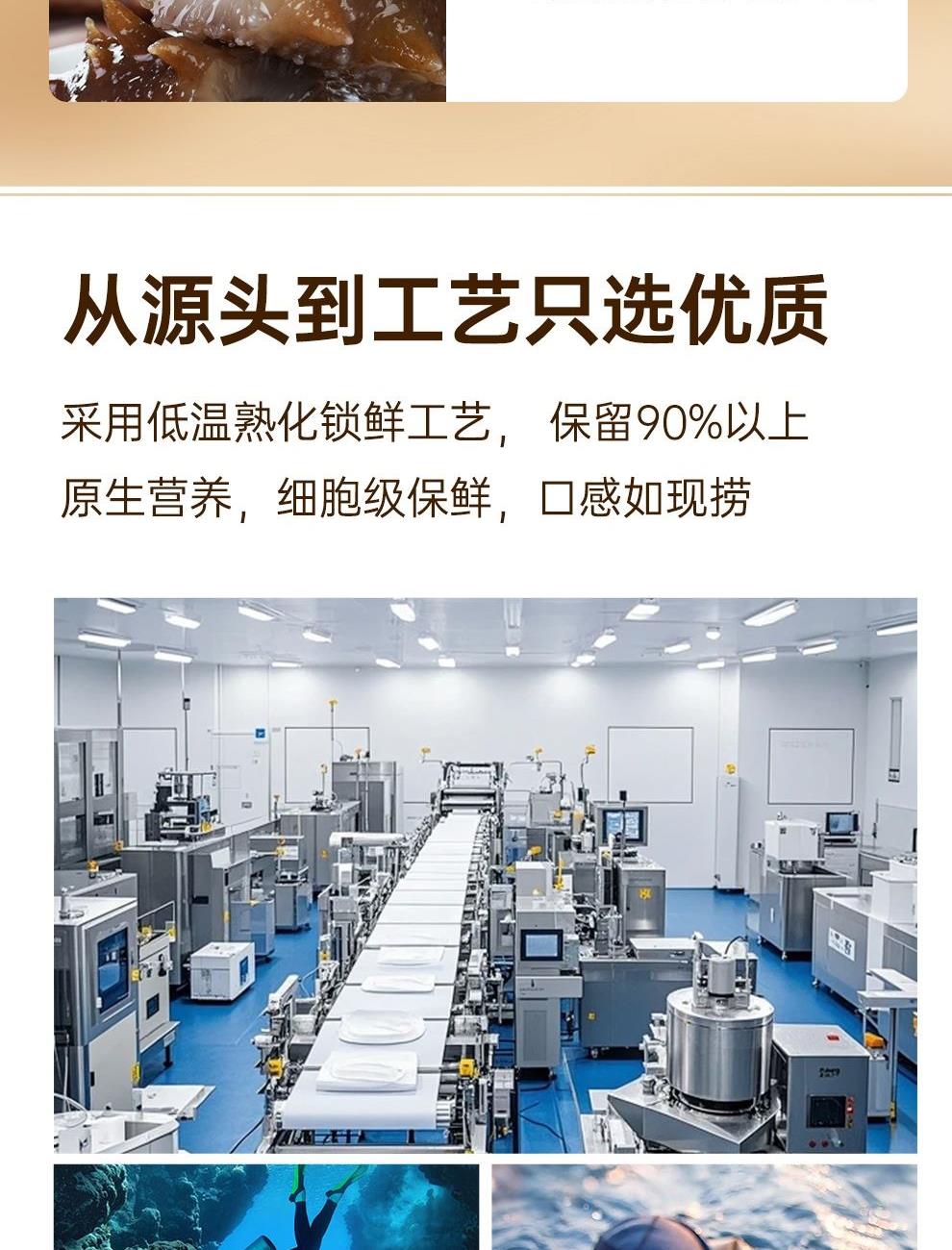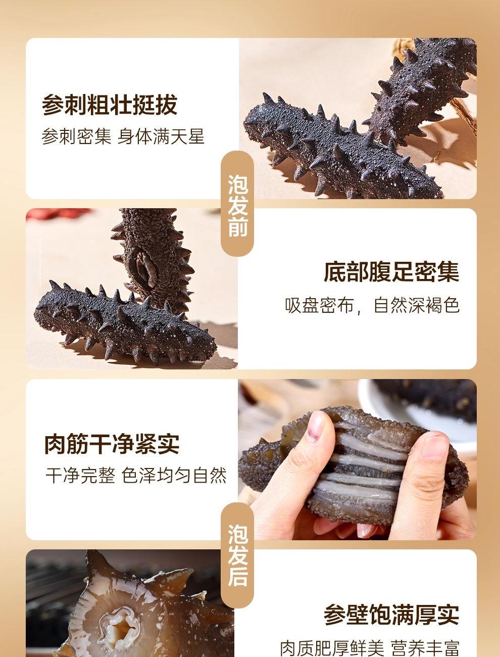 規(guī)格:42克/盒(10頭) 賣點(diǎn):大連是我國海參的重要產(chǎn)地之一,嚴(yán)格的海洋生態(tài)管控和養(yǎng)殖標(biāo)準(zhǔn)也保證了海參的穩(wěn)定質(zhì)量。淡干工藝保留了海參的營養(yǎng)成分。通過自然晾曬或者低溫烘干,減少了海參營養(yǎng)在加工過程中的流失。