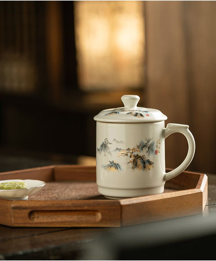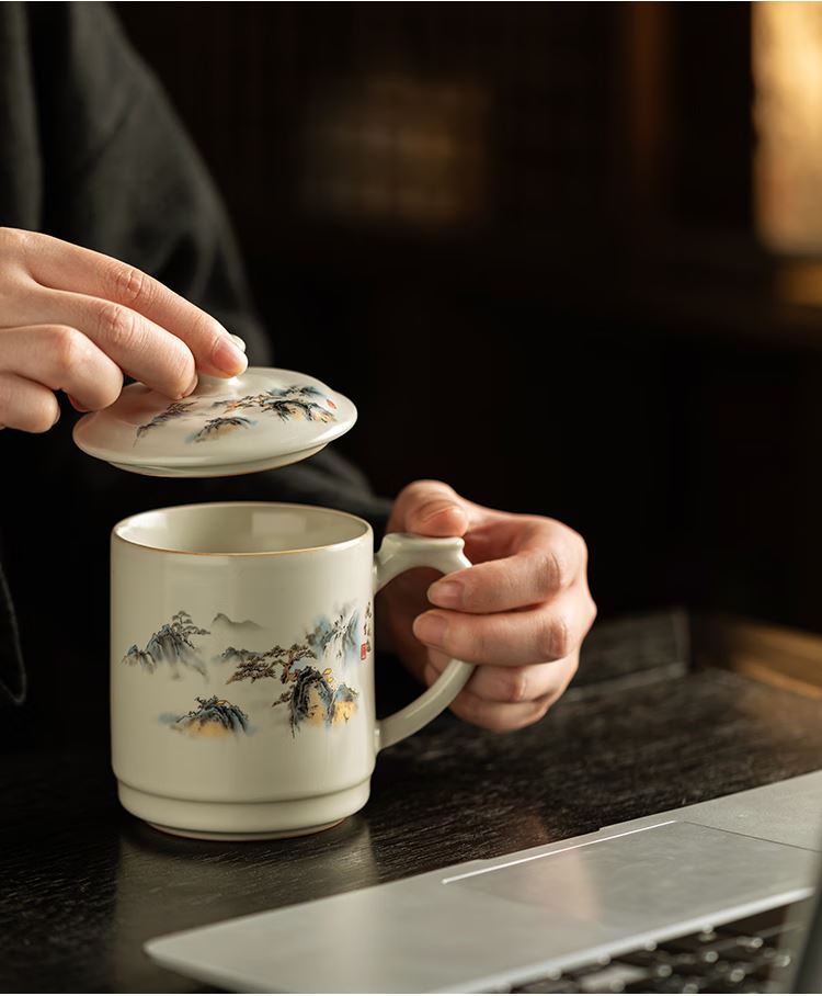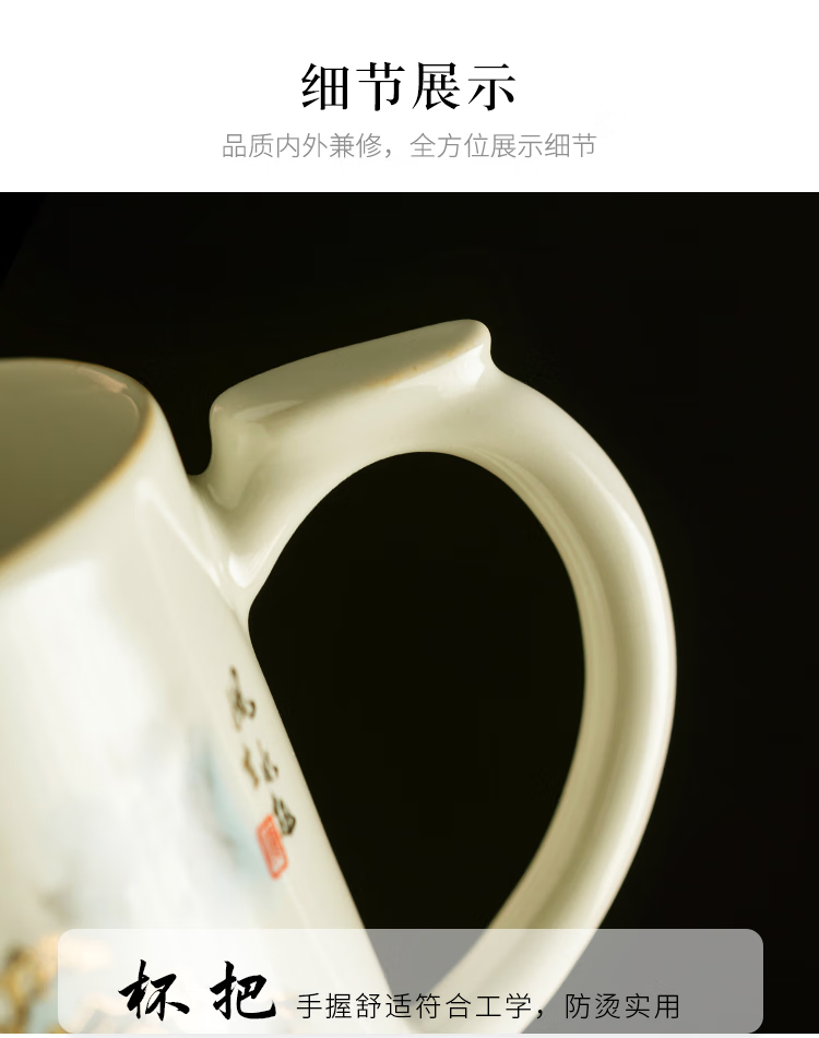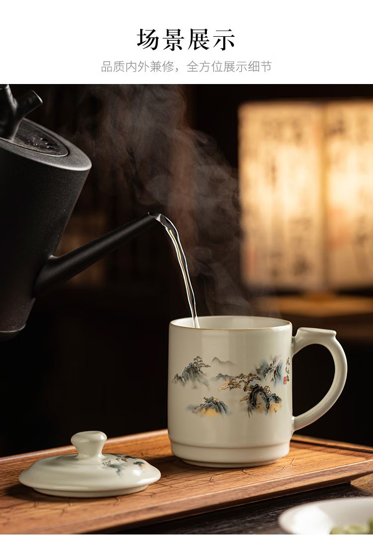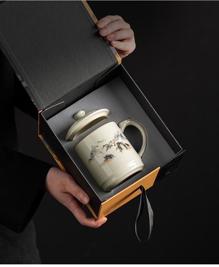 材質(zhì):陶瓷汝窯 個(gè)數(shù):1個(gè) 工藝:高溫?zé)?烤花 風(fēng)格:中式 容量:350ml 尺寸:茶杯12*13cm;禮盒19.2*17*11.7cm 配置清單:茶杯*1 禮盒*1 仿宋汝窯 質(zhì)感細(xì)膩 色澤清潤 開片紋路 描金工藝 古色古香 國風(fēng)禮盒 經(jīng)典器型 送禮實(shí)用