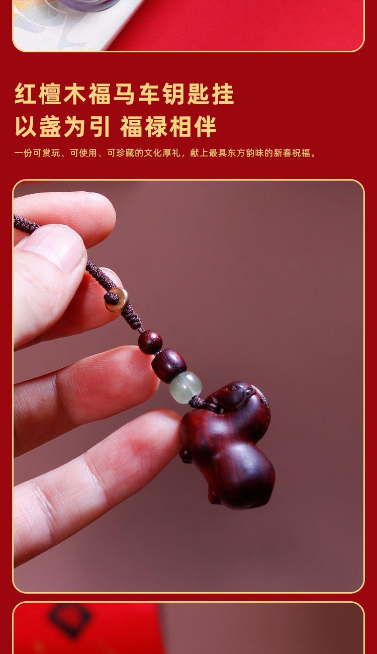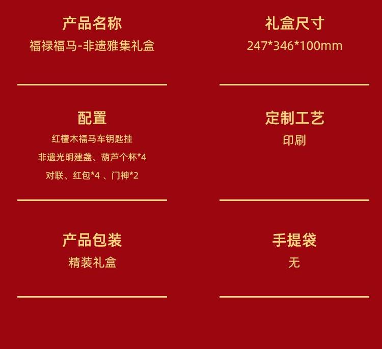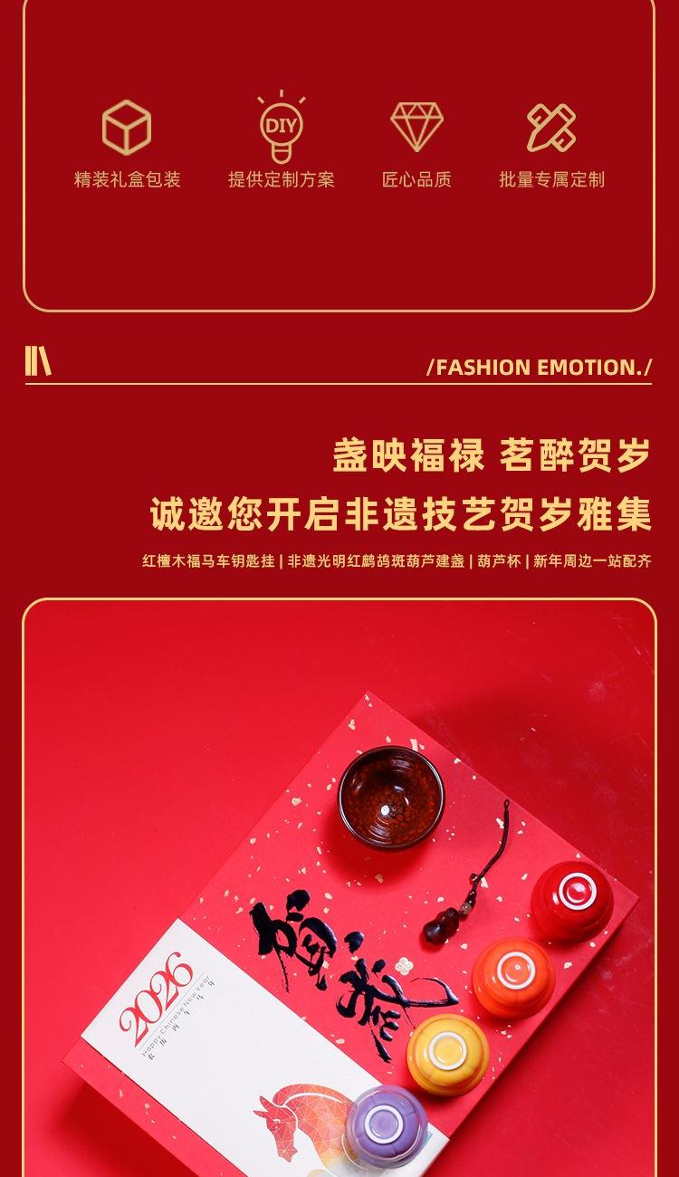 紅檀木福馬車鑰匙掛x1 非遺光明紅鷓鴣斑葫蘆建盞x1 葫蘆個杯x4色(顏色可以選) 對聯(lián)*1-紅包*4 門神*2 精裝禮盒手提袋*1