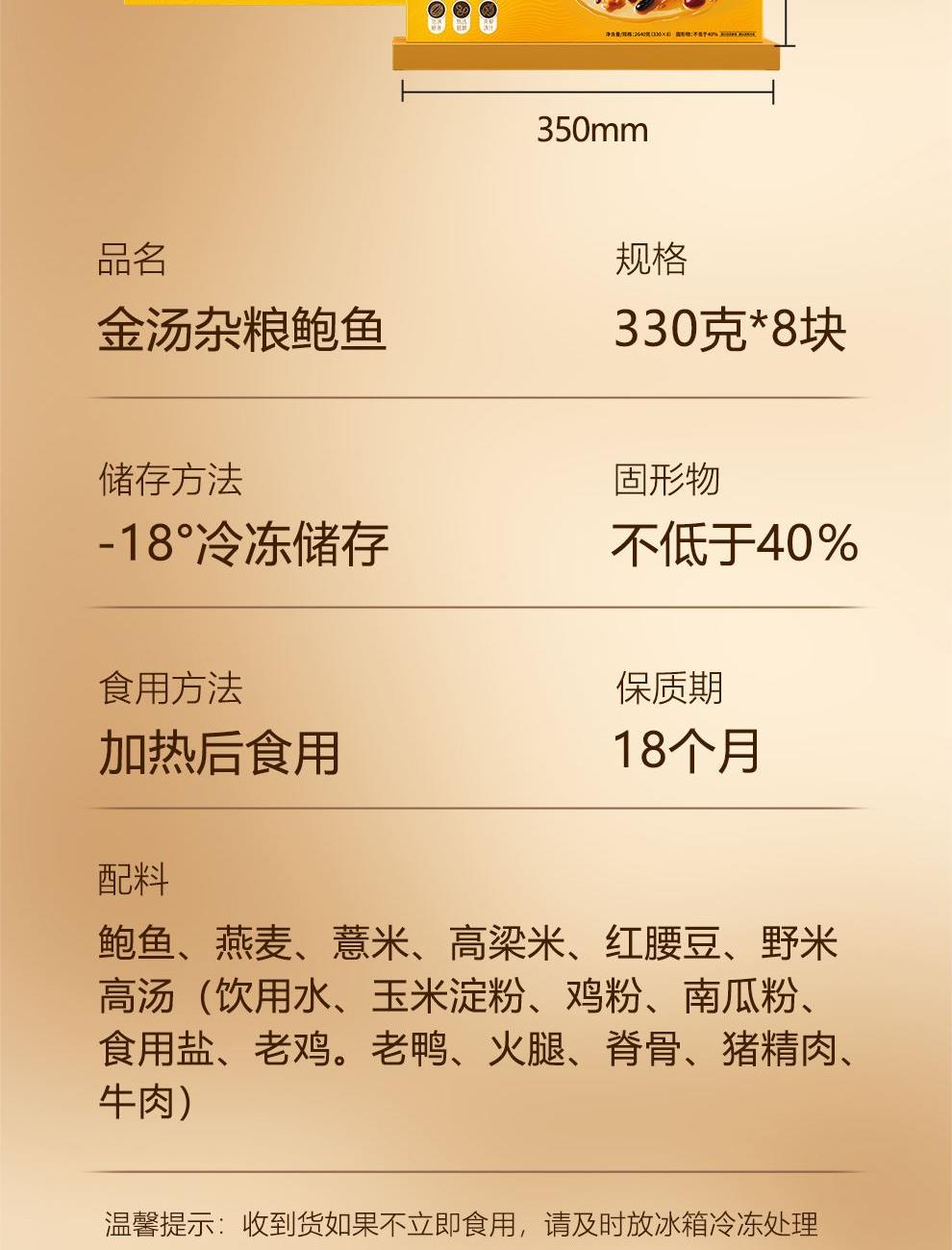 - 金湯濃郁鮮香:金湯一般是用多種食材精心熬制,如老母雞、豬骨、南瓜等。味道濃郁醇厚,南瓜讓湯色澤金黃,有自然的甜味,這種濃郁鮮香的湯能提升鮑魚(yú)和雜糧的口感。