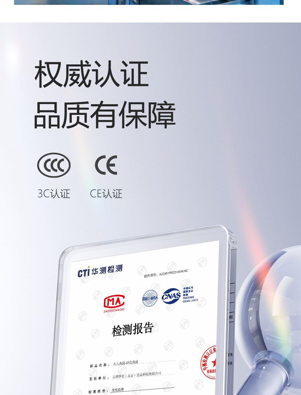 規(guī)格:648克(108克*6碗)、每碗不低于40克 賣點(diǎn): 燕窩原料精選馬來(lái)西亞、印尼森林雨季燕盞,潔凈度更高,泡發(fā)率更好。121℃,1140秒數(shù)控,科學(xué)燉煮,保留燕窩營(yíng)養(yǎng),口感細(xì)膩爽滑。堅(jiān)持 0添加 0色素 0防腐劑,孕媽和寶寶也可以放心享用。一瓶一碼可溯源,開蓋即食,開啟滋補(bǔ)。
