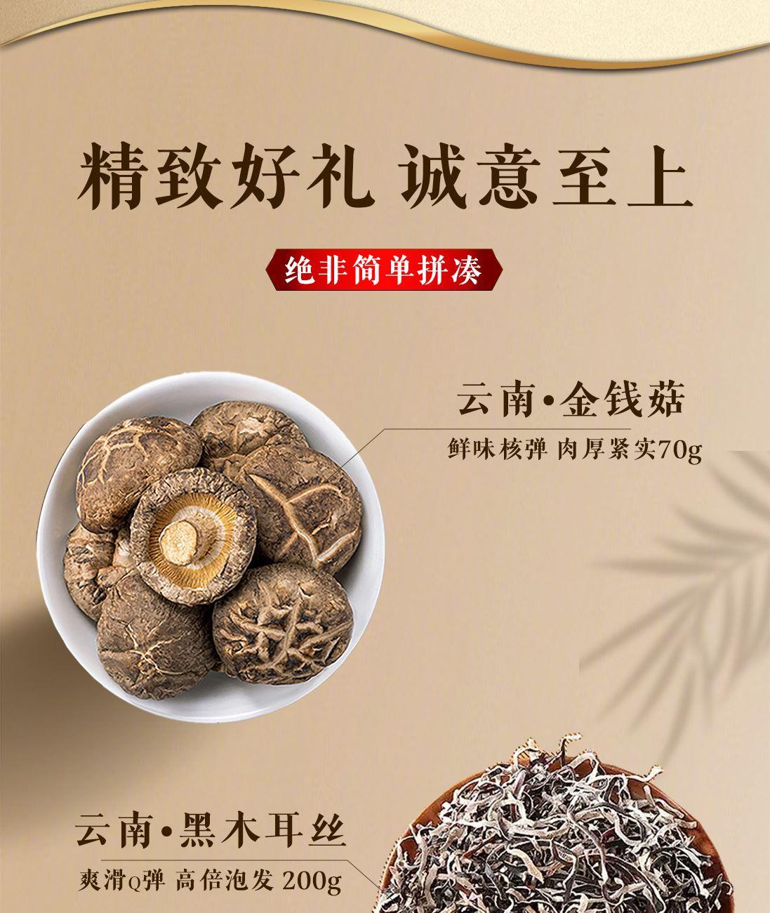 配置:鹿茸菇68g、金錢菇70g、七珍湯包60g、蟲草花70g、姬松茸60g、黑木耳絲200g、紅棗250g 商品規(guī)格:778g/盒 產(chǎn)品尺寸:375*300*15mm 保質(zhì)期:12個(gè)月 京東自營(yíng)好評(píng)1w+,源頭工廠,支持項(xiàng)目保護(hù),支持授權(quán)