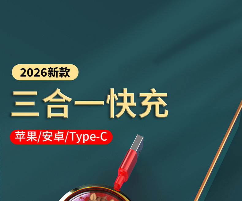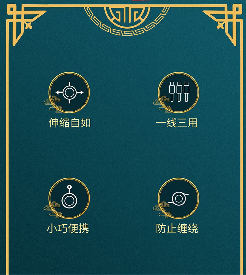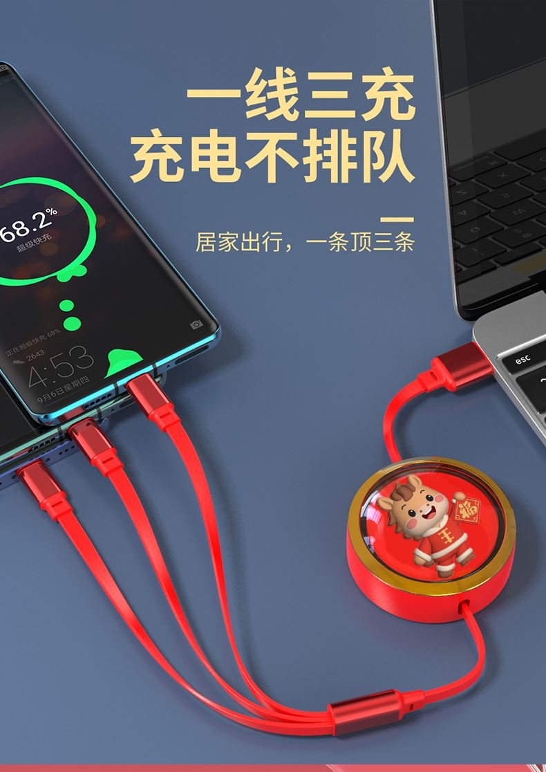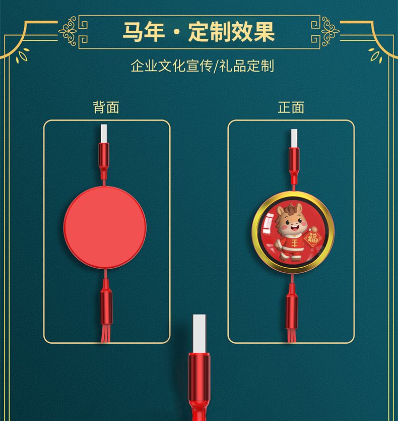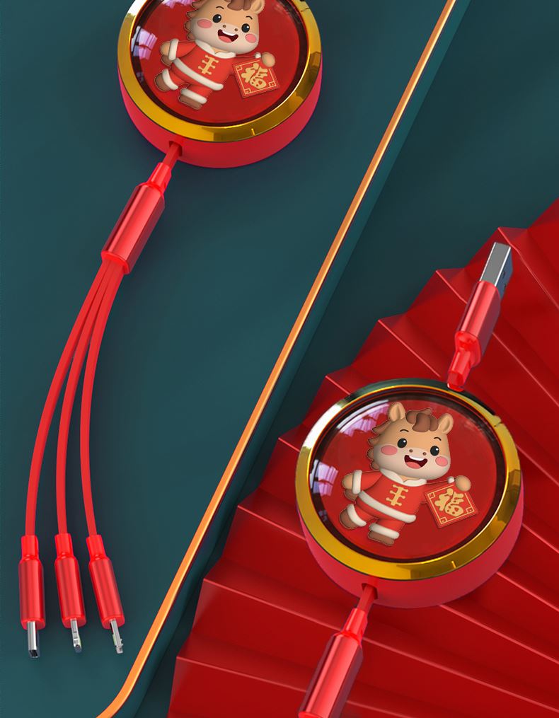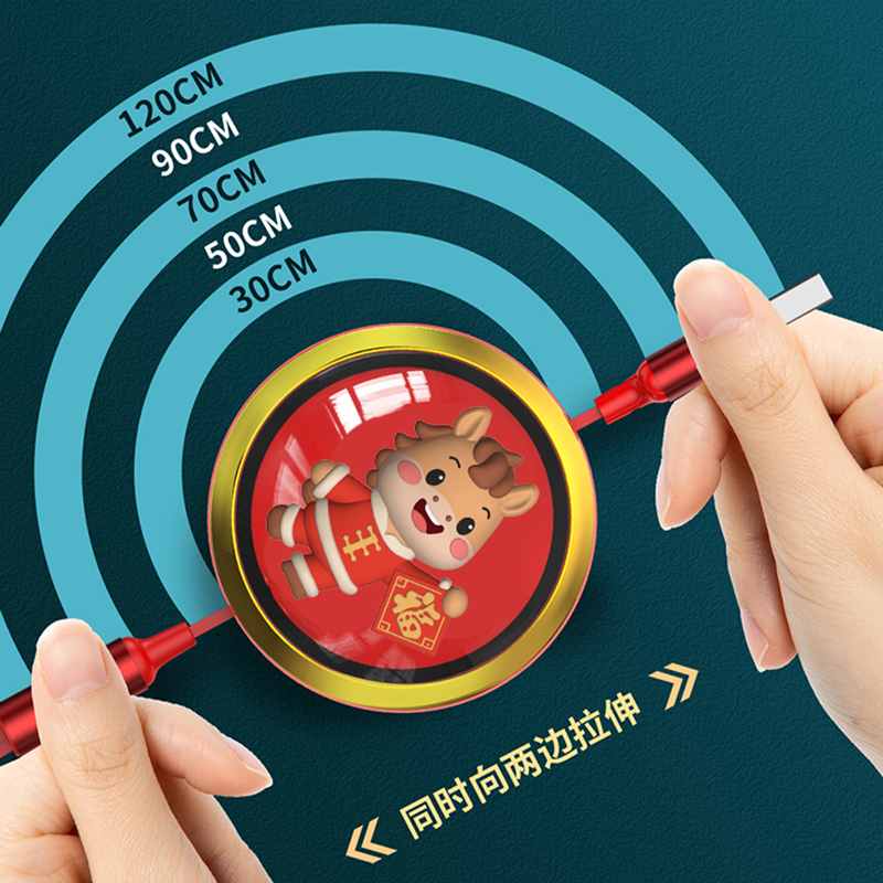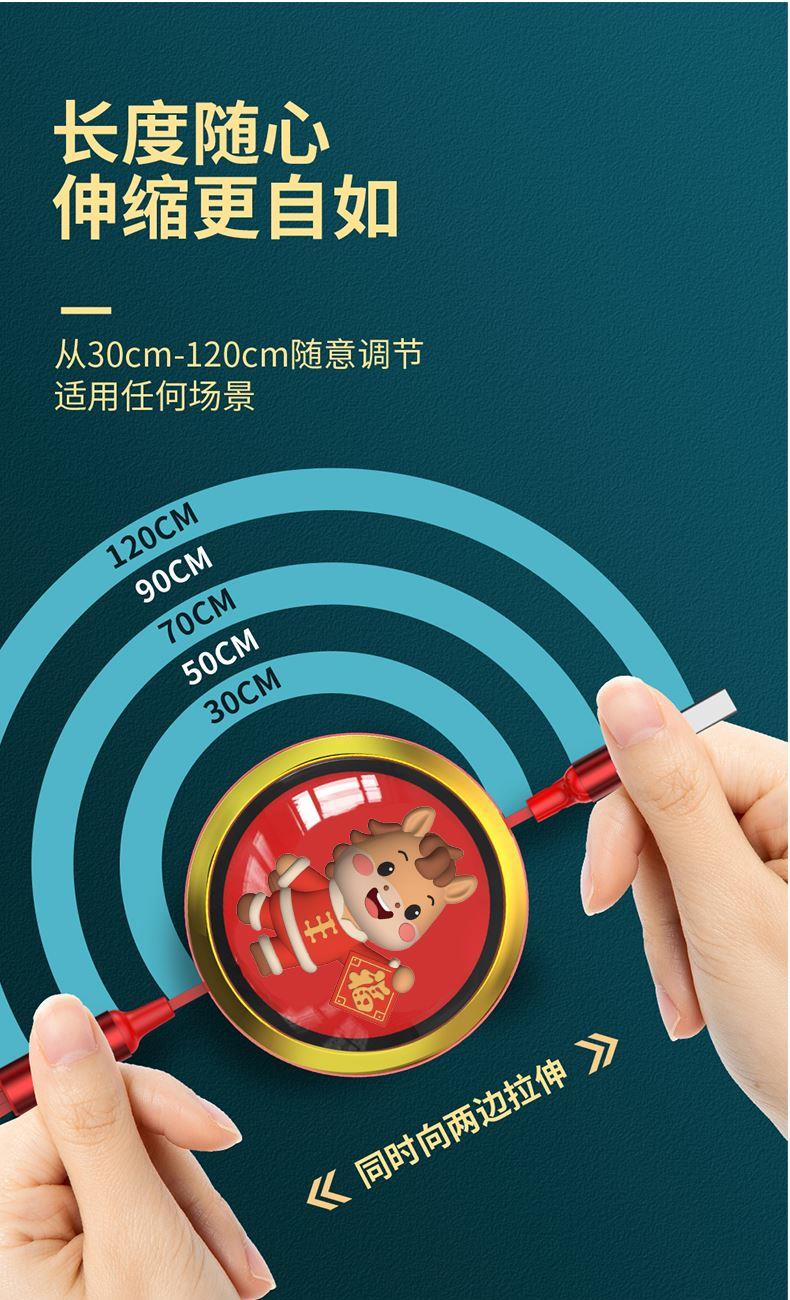 長 度:120cm 材 質(zhì):ABS+TPE+鋁合金 顏 色:紅色 接 口:蘋果接口 安卓接口 Type-c接口 輸出電流:5A 功 能:數(shù)據(jù)傳輸/充電 產(chǎn)品凈重:62g 產(chǎn)品特點(diǎn): 一秒收納 五檔伸縮 小巧便攜 方便攜帶 5A超級快充 充電更快 精美生肖造型 雙色可選