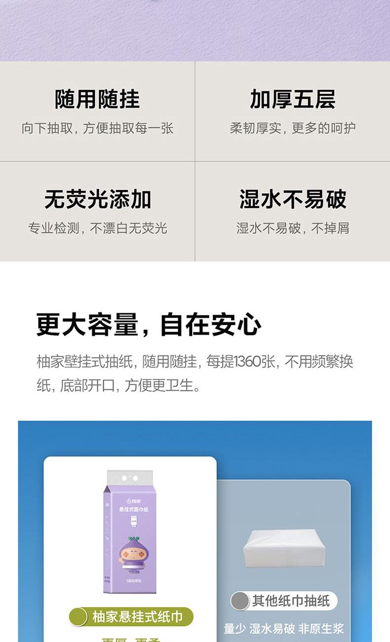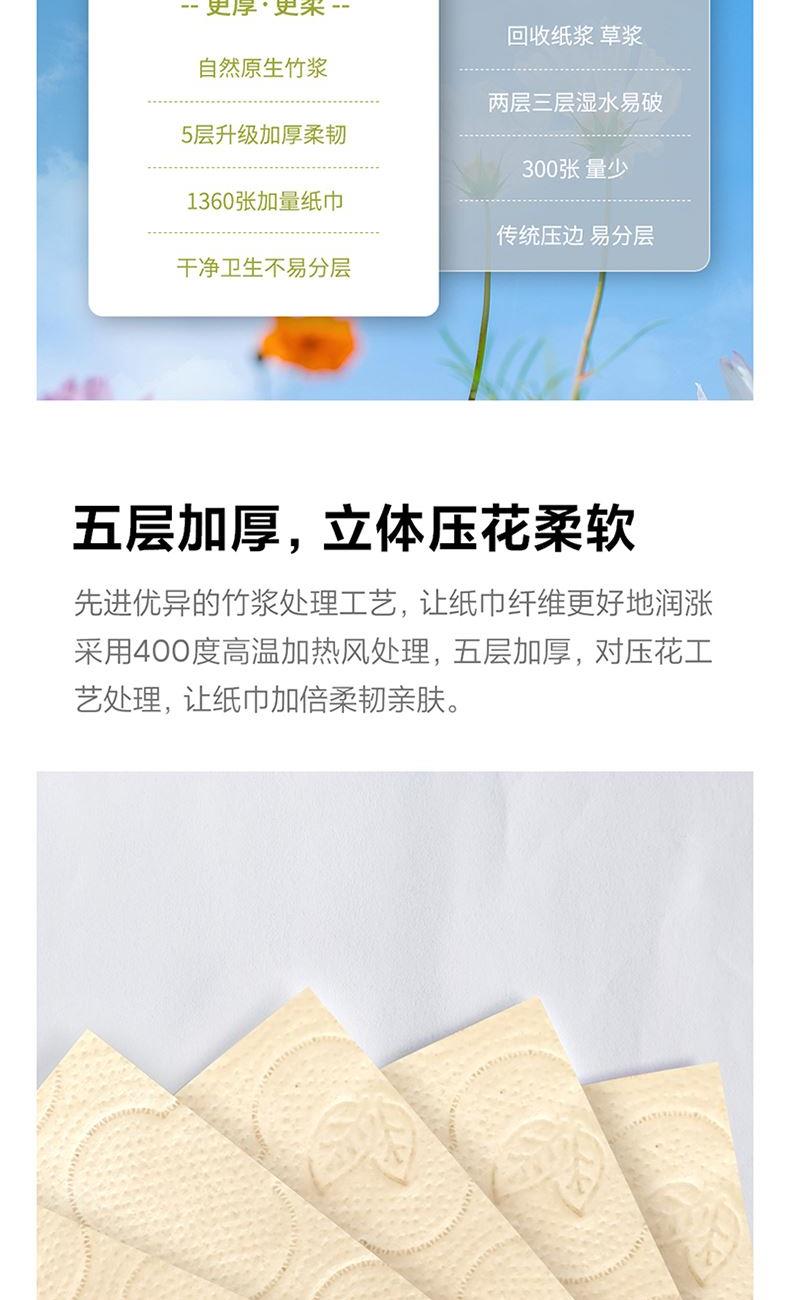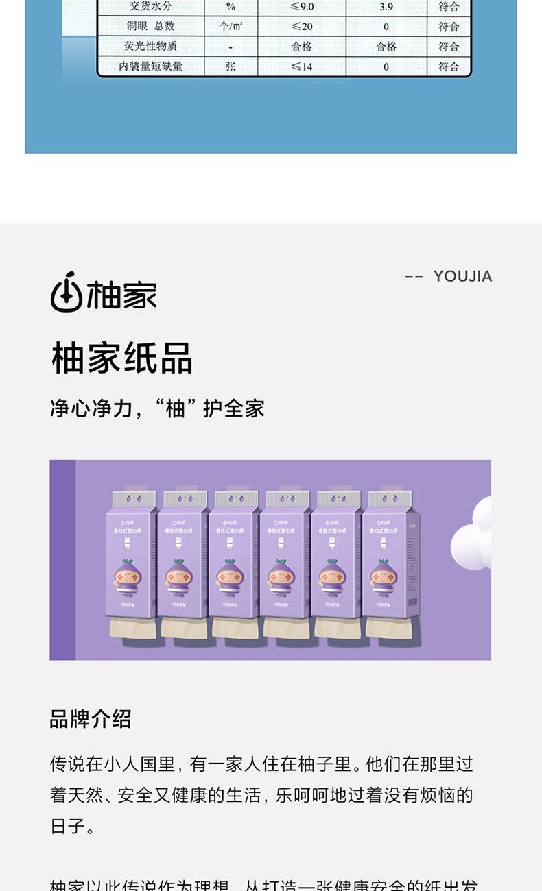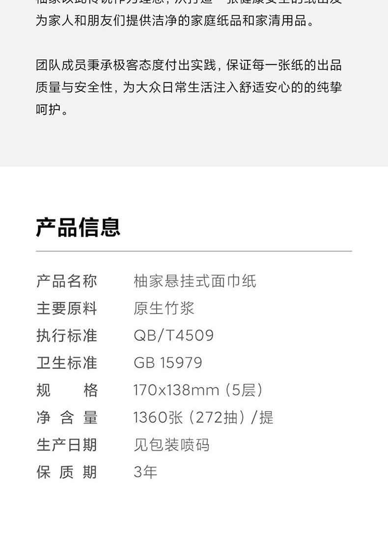 產(chǎn)品規(guī)格:170*138mm/張,5層加厚,272抽/提 產(chǎn)品重量:0.4kg左右 主要原料:原生竹漿 產(chǎn)品保質(zhì)期:3年