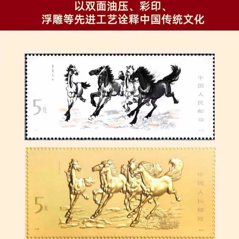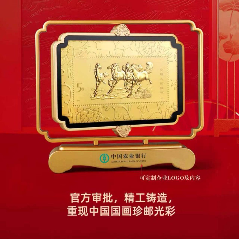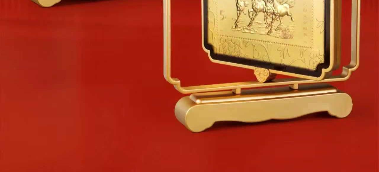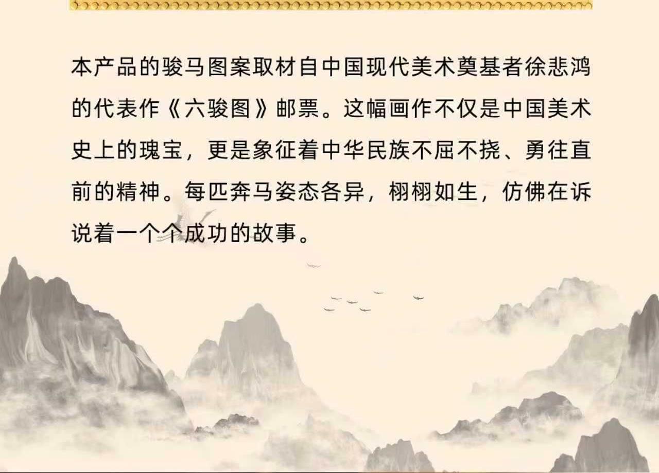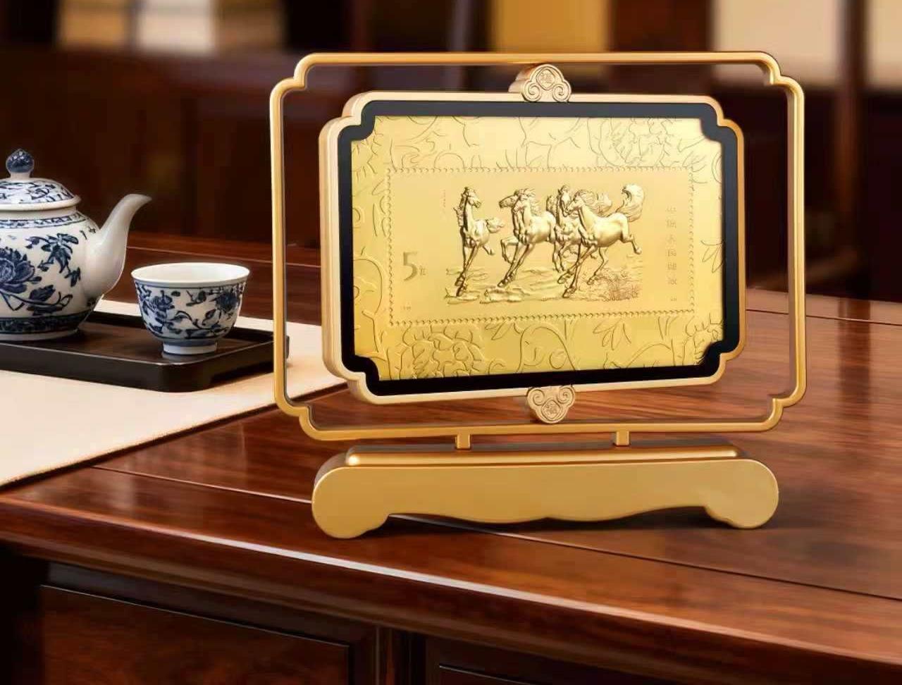 首創(chuàng)“珍郵+國(guó)畫(huà)+日歷”三合一設(shè)計(jì),將奔騰駿馬足金融入臺(tái)歷方寸之間,重現(xiàn)中國(guó)國(guó)畫(huà)珍郵的藝術(shù)光彩。金色邊框雕琢古典紋樣,底座沉穩(wěn)厚重,既是時(shí)間載體,更是值得收藏臻品。