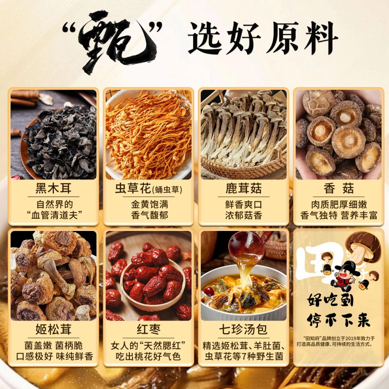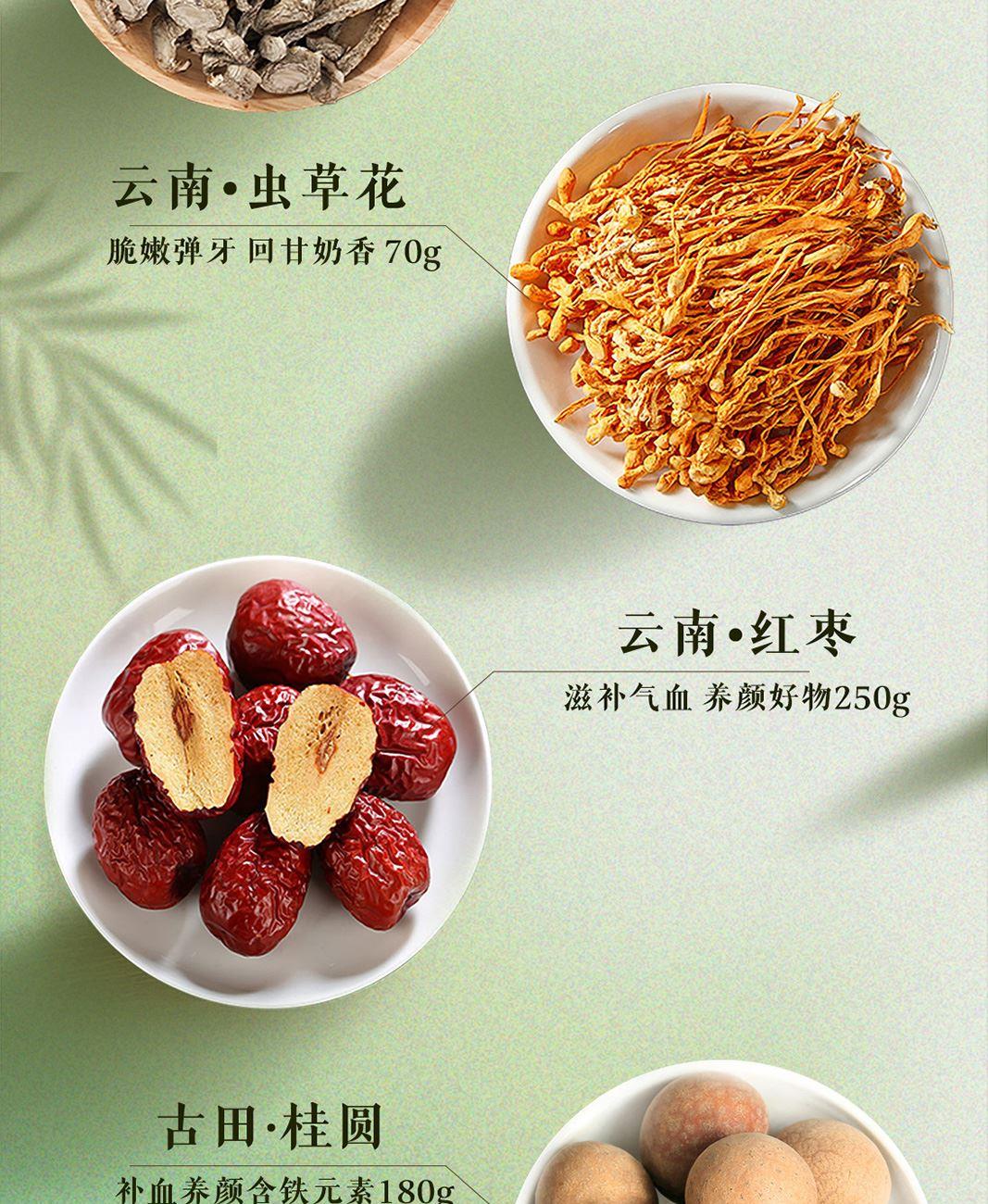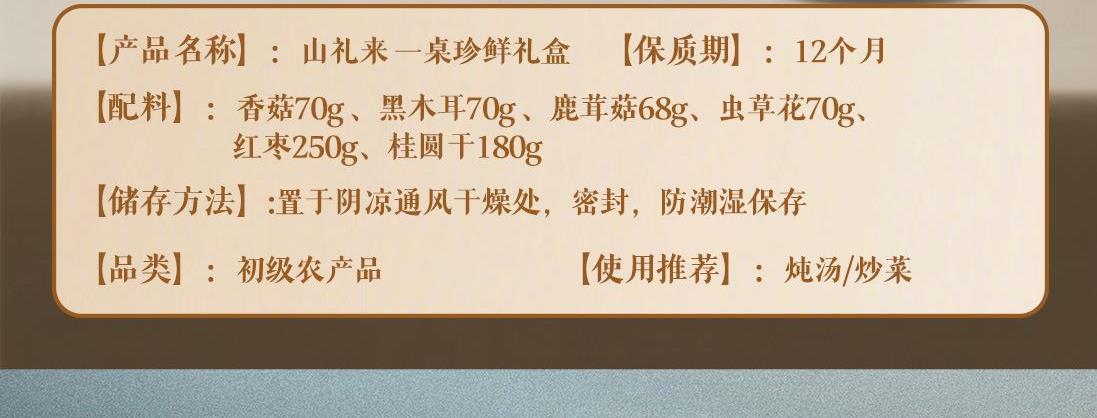 配置:紅棗250g、香菇70g、黑木耳70g、鹿茸菇68g、蟲草花70g、桂圓干180g 商品規(guī)格:708g/盒 產(chǎn)品尺寸:350*300*130mm 保質(zhì)期:12個(gè)月 京東自營旗艦店銷量好評1w+,源頭工廠,支持項(xiàng)目授權(quán),項(xiàng)目保護(hù)。